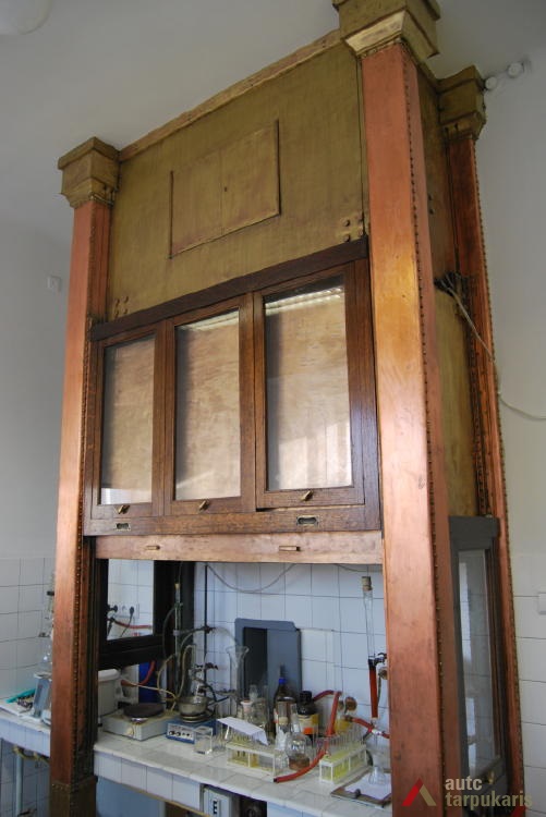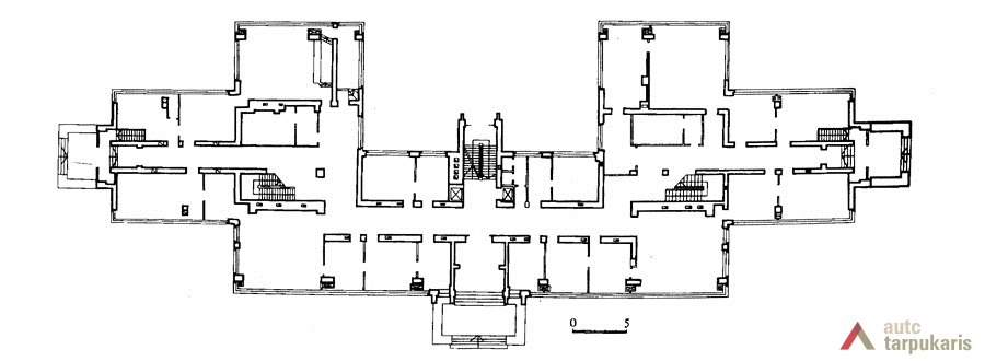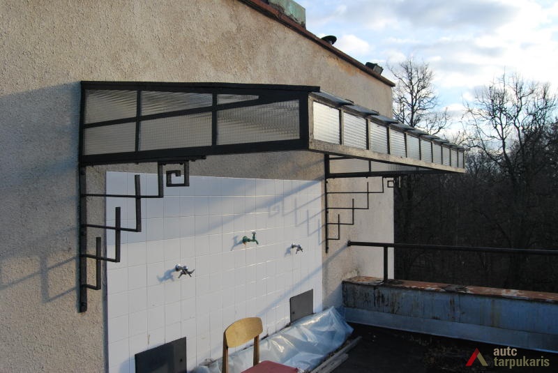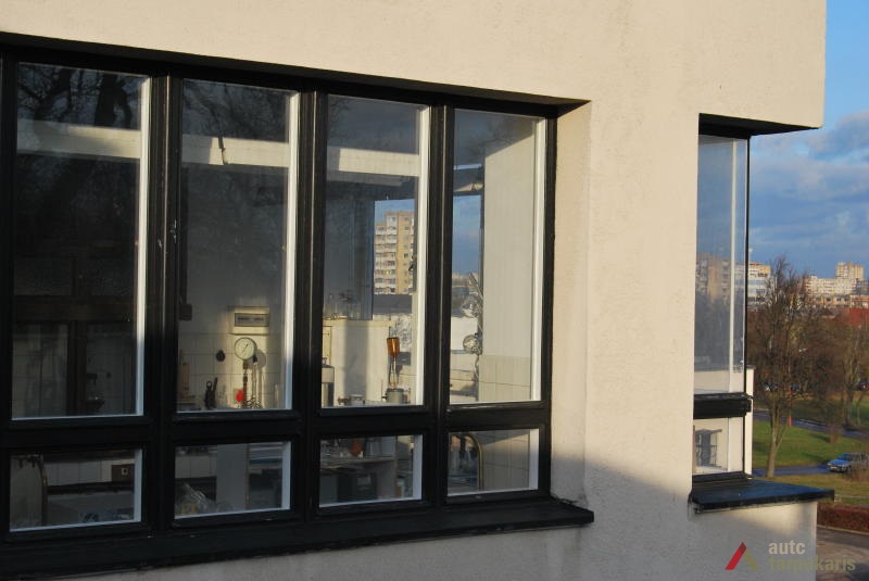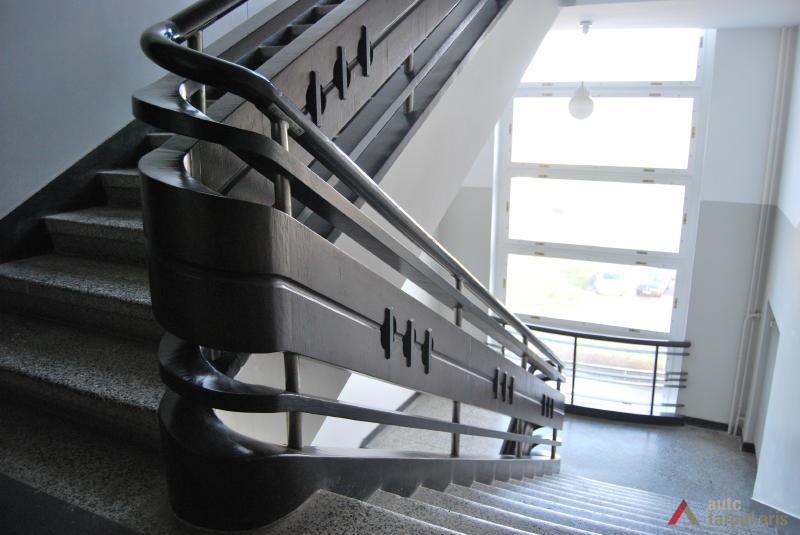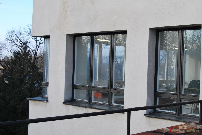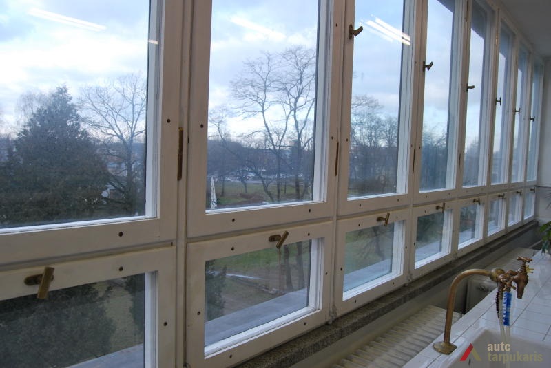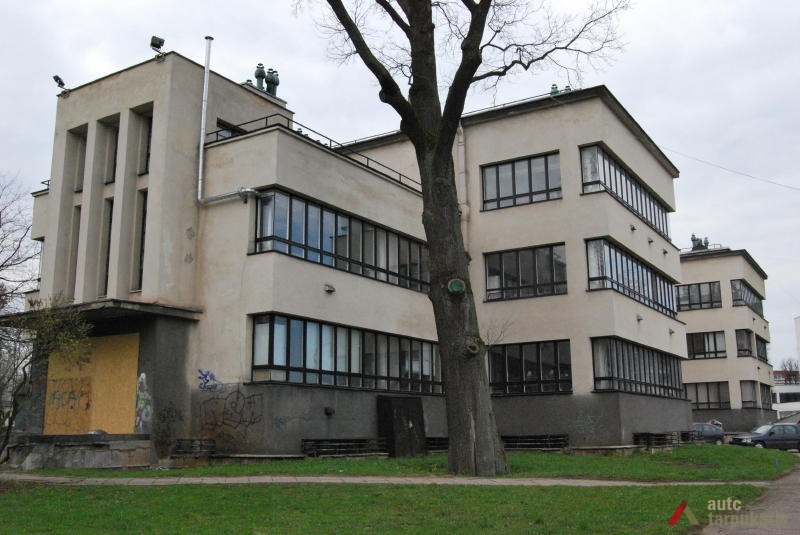 A need to build the Military Research Laboratory for the Ministry of National Defence arose in the early 1930s, after the participants of the National Weaponry Conference had established that Lithuania was in danger of potential attacks. The main purpose of the new laboratory was to embark on scientific research in the fields of explosive weapons, ballistics, biochemistry, microbiology, toxicology and etc. The winning project in the design competition was submitted by architect Vytautas Landsbergis-Žemkalnis. His design was heavily influenced by the contemporary Modernist theory, and by the famous Louis Sullivan’s motto: ‘form follows function’. Due to the application of particularly high-quality building materials, and the importance of the laboratory’s work for the national security, the original structure survives intact. Up to now the laboratory’s building fascinates the architecture lovers by its exceptionally fine combination of functionality and ‘clean’ Modernist aesthetics. Although the flat roof, strip-like windows, white plain façade, and the reinforced concrete construction are archetypal traits of the International Style, the laboratory’s design also has some distinctively Lithuanian characteristics. Modernism is combined here with some Neo-classicist tendencies, which are reflected in the symmetrical massing of the structure, monumental aesthetics, and in the visual emphasis on grand central entrance to the building.