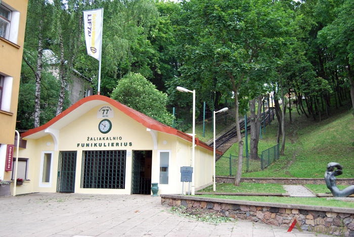 Funicular railway in the Kaunas district of Žaliakalnis is a particularly fine example of the Kaunas government’s attempts to improve the infrastructure of the rapidly expanding city. Among the principal concerns at the time of its construction was a disproportionate distribution of the building activity between the new-town and the Green Hill areas. It has been noticed in the late 1920s that the new-town became a particularly desirable area for new developments. Land and property prices were growing there rapidly too. The Green Hill area, on the other hand, was lacking interest of local investors and developers. Funicular railway was intended to improve the pedestrians’ communication between the two parts of the city. The first funicular wagon opened its doors in the early 30s and shortly after that, the second wagon was ordered. In 1937 the funicular went one of the major reconstructions; two spacious new passenger wagons replaced the primitive-original once and the rail-tracks were improved. Lithuanian engineer N. Dobkevičius was responsible for designing the new wagons, and a Swiss company ‘Theodor Bell’ produced the chassis. Up until this point the funicular is in working order. The existence of such type of transportation highlights one of Kaunas’ most distinctive topographical traits – hilly urban scenery.