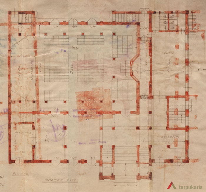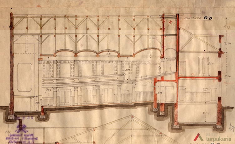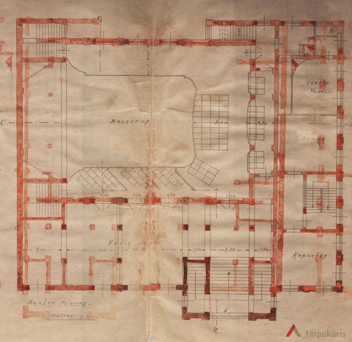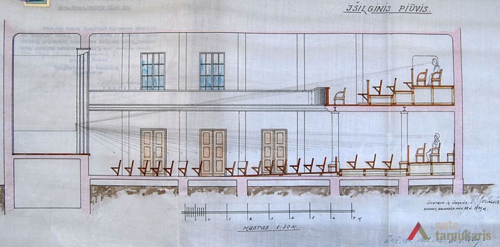 The cinema theatre “Odeon” (from January 1, 1935 – “Glorija”) – an important part of Lithuania’s cinematic history. Though the permission for construction was issued in 1923, the building of the cinema theatre was finished only on December 22, 1925, just before Christmas and the commission declared that the 500 capacity cinema theatre is prepared, convenient and cozy and since the day of inspection the cinema theatre is allowed to be open. In the inter-war Lithuania it was the first building built specifically for cinema theatre. Also, it was the first place in Lithuania to host acoustic cinema. It seems that this cinema theatre was different from others also for its cultural environment, as “since the establishment date it was known for divertissements. It held the first concert of the Symphony Orchestra in Kaunas cinema theatres, which was managed by Izaok Vidman-Zaidman”. Moving the building further into the yard was one of the first cases when the inner yards of Laisves alley were given for public usage. The space next to the City Garden definitely enriched the variety of Boulevard’s entrances. The building was reconstructed in 1929, 1936 and 1939. In Soviet times, until 1960 when the Puppet theatre was established, cinema theatres “Baltija” and “Pionierius” also were open in the building.