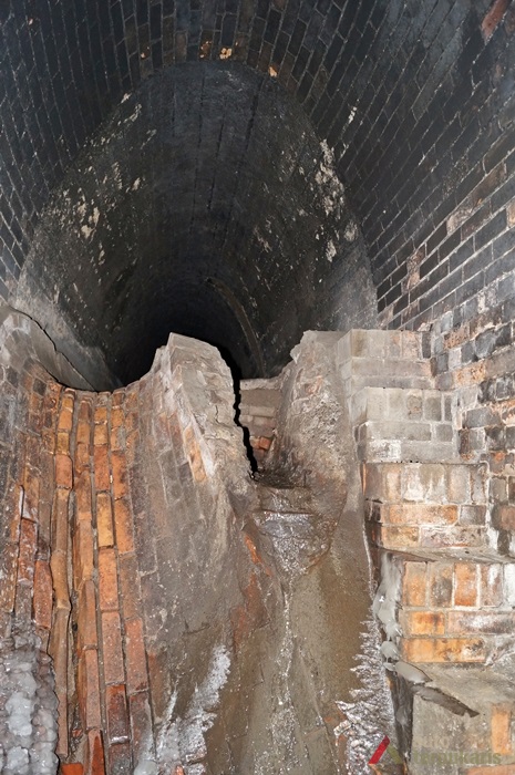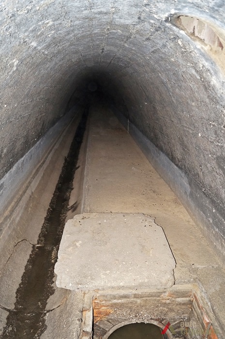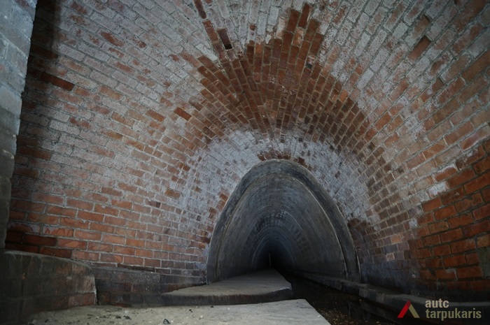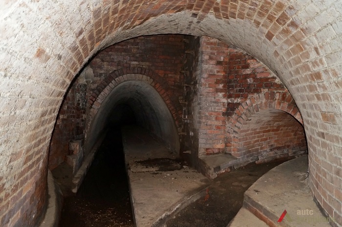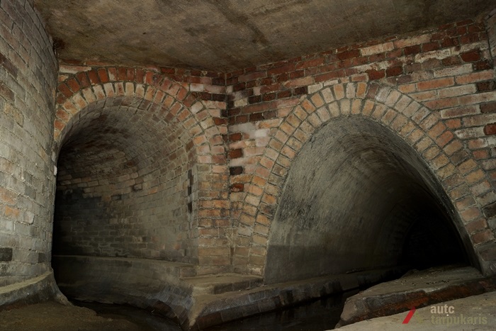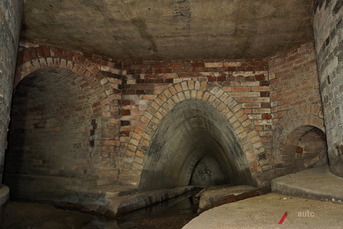 The main channel of Lower Šančiai Collector was laid in a straight line from Juozapavičius Avenue to Nemunas. Collector walls and arch was made of red brickwork. The channel is 450 m long and 4–9 m deep and there is an industrial channel laid below it. From Juozapavičius Avenue the channel splits into two branches: one goes under Juozapavičius Avenue, the other — under Siūlai Street. The main channel is 1.8 m high and around 2 m wide at the bottom; the collector under Siūlai Street is 1.25 m high and around 1.5 m wide. At the bottom of the channel there is a separate furrow for collecting minor rainwater flow and in the walls there are rainwater collection holes. Under the main channel there is an industrial sewerage, whose maintenance is carried out via brick walls covered with concrete lids. At the end of the main channel, near Nemunas, there are two thresholds each 1–1.5 metres high.