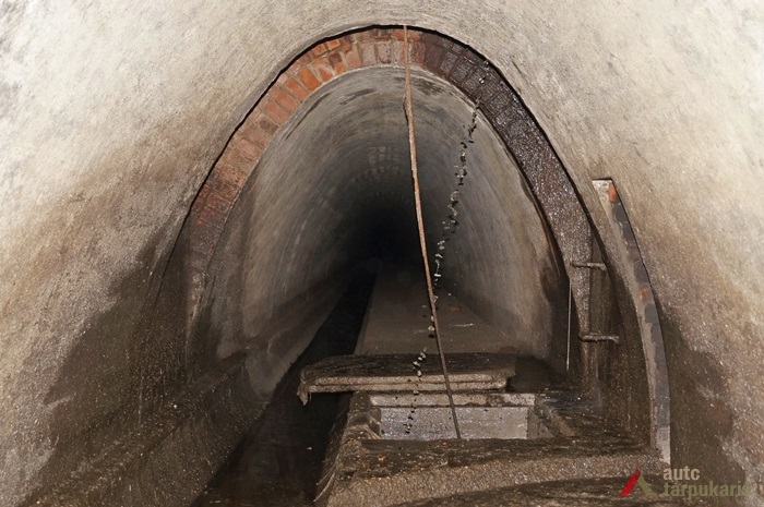 Construction of Kaunas sewerage and water supply systems began in 1924. The works were headed by engineer Steponas Kairys. City’s sewerage was designed having in mind large potential for development of Kaunas as the temporary capital (it was estimated that over the next 20 years city’s population would grow to 200,000). According to the draft at that time, complete sewerage systems were only expected to be built in the Old Town and the new part of the city. Besides the Old Town sewerage, one of the largest sewerage collectors was in Lower Šančiai, under Mažeikiai Street. During the interwar period this collector was used to drain rainwater which collected in the middle of Lower Šančiai in a valley between High Šančiai and Nemunas hill. The water that accumulated there often flooded former Šmitai Brothers workshops, company Metal and yards of residents.