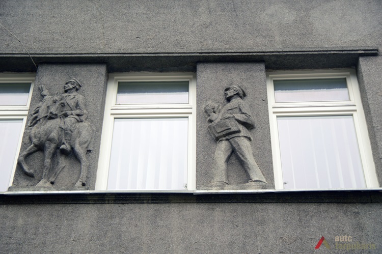 In terms of style, postal employees were not impressed with the modern building: “The post office does not stand out: it is small and simple. Perhaps only the granite sculptures in between the second floor windows on the front face of the building catch an eye when you pass by it.” These sculptures depicted people performing different tasks — a soldier, a sailor, a clerk and others (sculptor Juozas Zikaras). The architecture received a lot more praise from the Construction Inspectorate — when approving the draft, they made a very rare comment saying: “After looking through the draft of Raseiniai post office, we are in full support of it and would like to encourage the post board to continue sending similar drafts to the Construction Inspectorate”.