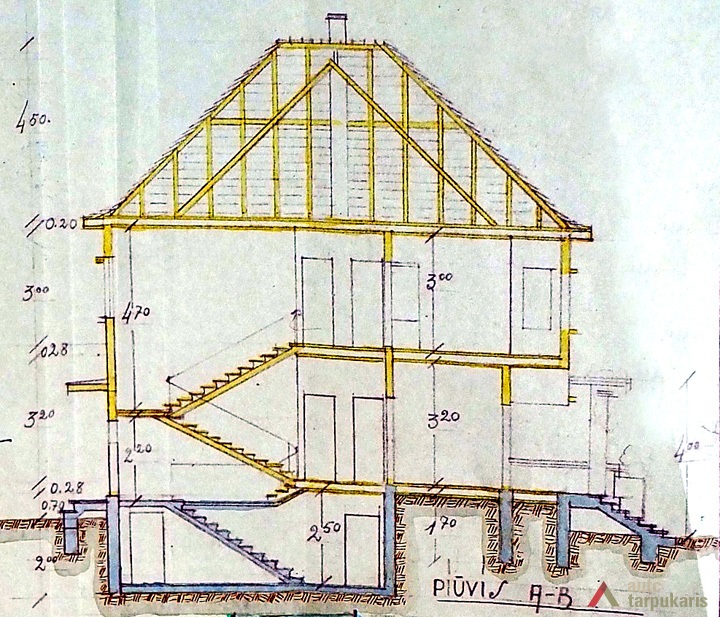 As the function of the building keeps changing even today, its inside has been rearranged as well. “Already in 1967 it served as a division of Lithuanian resort research laboratory. During the reconstruction it had offices and laboratories set up in the main building. The previous wooden board floors were replaced by geometrically composed tile floors.” Building's roof forms were damaged during the Soviet period, while under the roof there was an attic set up.