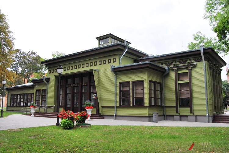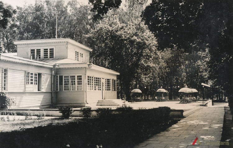 In 1924 Birštonas resort was transferred to Lithuanian Red Cross association which undertook to put into service, manage, and improve resort's property, land, mineral waters, buildings, etc., including taking care of kurhaus's modernization. In the late 20s, as the restructuring process was under way, the association torn down the kurhaus and built a new one in its place in 1931. On the same plot it also built a compact wooden mineral water pavilion with a high double-pitched roof.