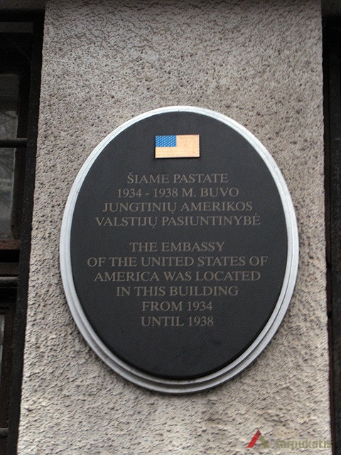 The construction of the house was initiated by the mayor of the city Jonas Vileišis on his own piece of land. Part of the house had residential premises which were inhabited by the owner of the house, others were rented. This object has a unique significance for diplomatic history of the nation, as it accommodated the United States embassy in 1934-1938. The front face of the building is divided horizontally with equally spaced out rows of windows. The symmetry ends with the rounded corner which connects the main part of the facade with the side. Both parts of the facade are connected by balconies which maintain the curved shape of the facade’s corner.