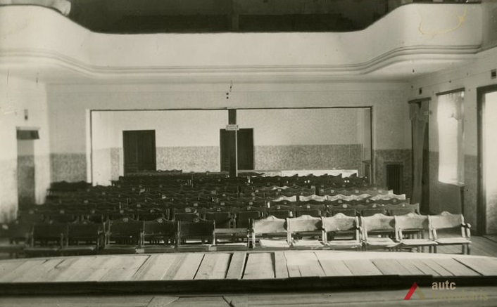 Interior of Riflemen's Union house in soviet times. Photo by J. Kazokas, 1948, from Utena Local Lore Museum, UKM F 9.