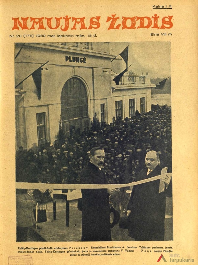 Opening of the railway station in Plungė. Published in “Naujasis žodis”, 1933.