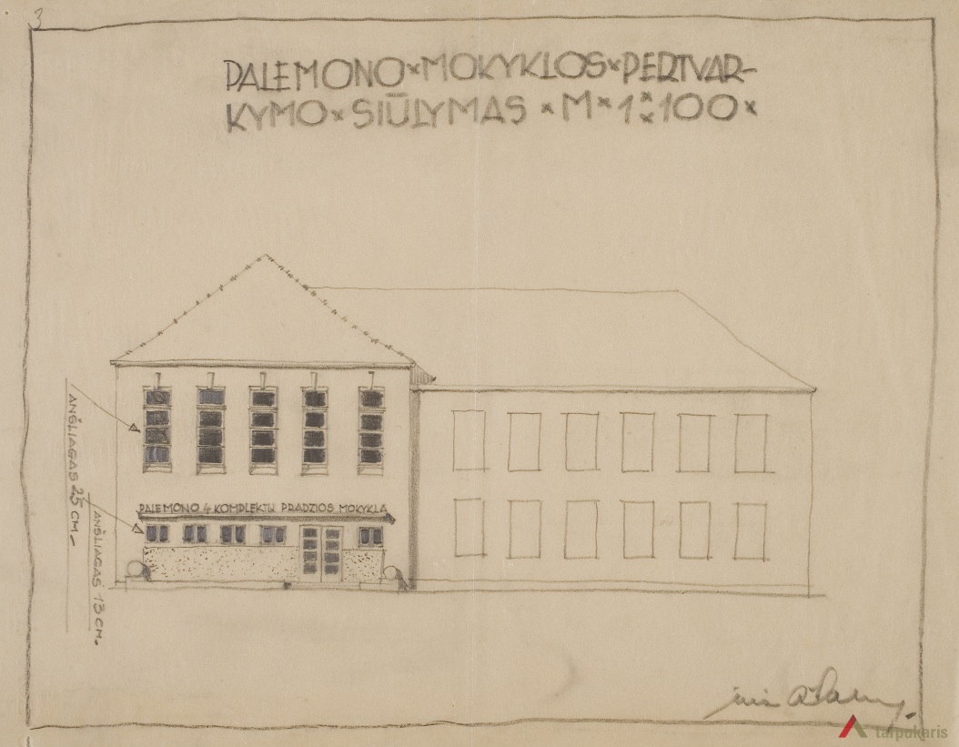 Adjustment project for Primary school in Palemonas,1936, from the Lithuanian Central State Archives