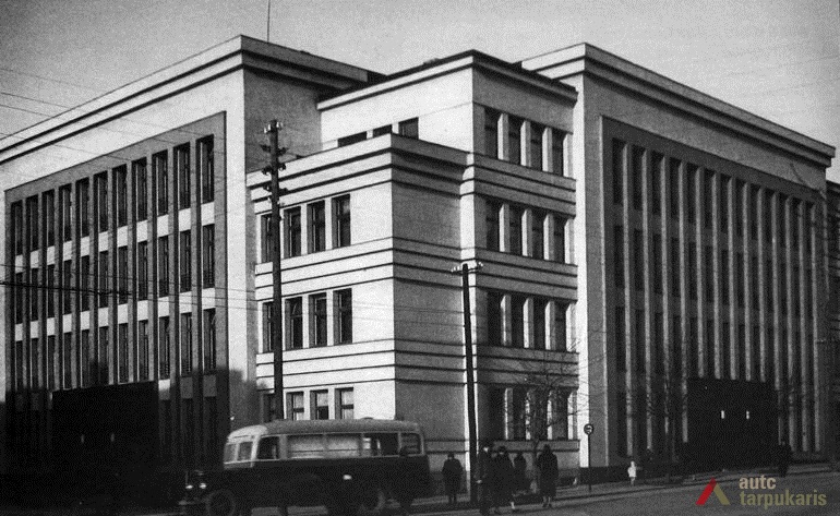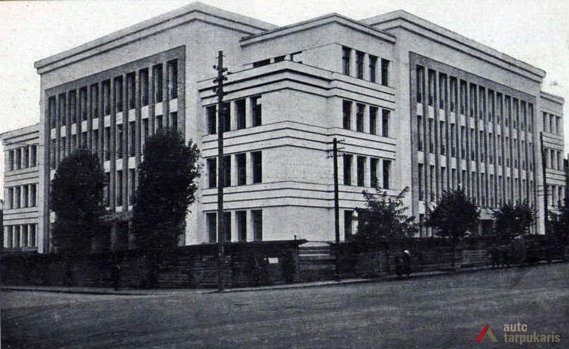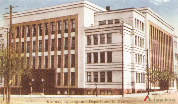 Kaunas County Board, Office of the Governor of Kaunas City and County, Chief of Police of Kaunas City and County and the Department of State Security established their offices in one of the largest administrative buildings of the interwar Lithuania. The basement accommodated institutional archives, apartments of couriers, boiler-house and other rooms. A two-storey garage with apartments for drivers and a printing-house were built in the yard. "During the Soviet period, the building served as the seat of the KGB."