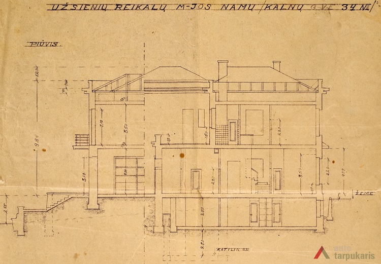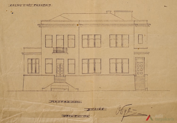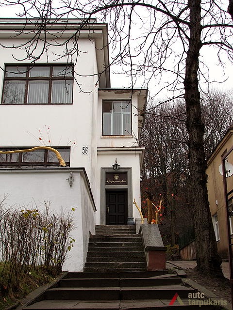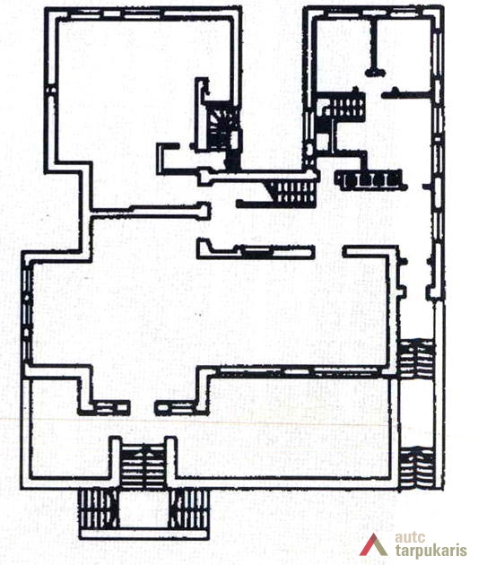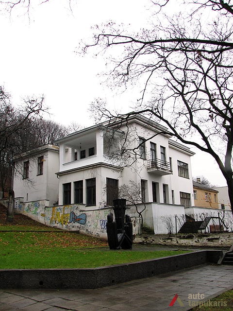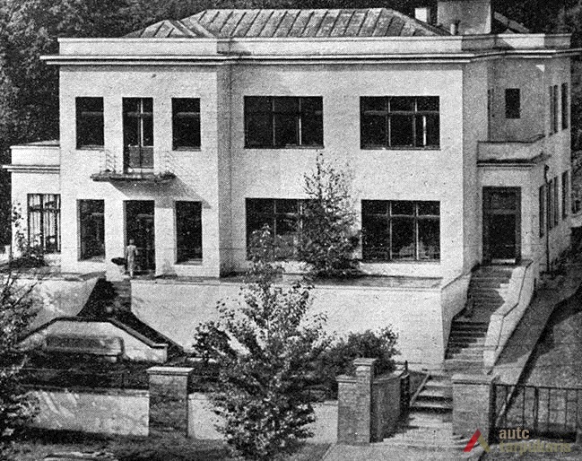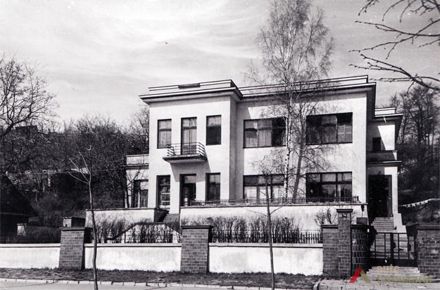Vatican mission was built on one of the most representative and modern Kaunas streets at that time, dictated by the row of prestigious brick buildings (mainly residential) which emerged during the interwar period. Located on a slope and moved away from the “red line”, opposite to the prevalent trend of building in a row, the villa had many similarities to the classical Italian villas. It is interesting to note that the architect of the building had recently returned from his studies in Italy. Asymmetric object was characterised by a very functional and flexible interior layout. The first floor was to have an office, a study room, a saloon, a dining room and an orangery, separated from each other by sliding partitions, which could be pulled aside to create a large space for celebrations. Such spatial flexibility was prompted by a very innovative solution prevalent in the most well-known examples of modernist architecture (e.g. in Schröder House in Utrecht, the Netherlands designed by Gerrit Rietveld in 1924). Nevertheless, facade silhouette were quite modest. Classical solidity of the object is enhanced by an outstanding cornice and a monumental terrace with stairs. In 1932 the house became a children’s hospital, whereas during the early Soviet period Health Insurance People’s Commissariat transformed it into a TB dispensary. Later the building became a kindergarten, since 1971 – city’s Cultural Department, and since 1973 – Kaunas Artists’ House.
