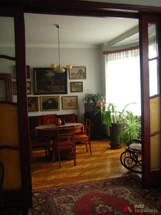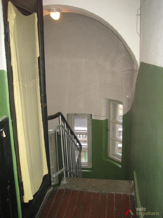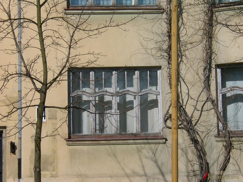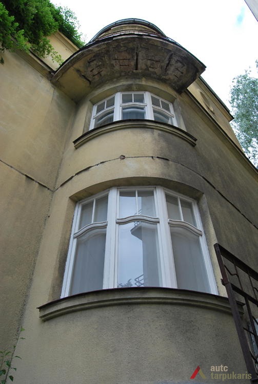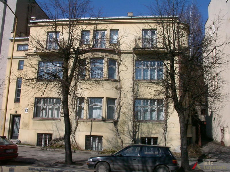This is a two-story building designed by V. Landsbergis-Žemkalnis in 1928. In 1938 the third floor was added. The building is sleek and asymmetric. The staircase is built on the side of the building and pushed slightly to the backyard, away from the street. After building the third floor above the glazed staircase, a small loft was formed. The front face is divided into two phases: the third floor is separated by a small ledge. The rounded central part of the facade slightly comes out and is topped by a small balcony on the third floor. Window frames of the first and the second floors have wavy shapes which make the facade look more expressive. The building is topped by a moderate cornice. The side face has a rounded shape pushed back to the back end of the plot. The back face has a cylindrical staircase (avant-corps) coming out to the courtyard. Above it there is a spacious study with three huge windows. Between 1929 and 1966 the house was home to artist A. Žmuidzinavičius. In 1966 the house became a division for M. K. Čiurlionis art museum and Antanas Žmuidzinavičius art and collection museum. During the interwar period Swedish consulate temporarily stayed at the house, in 1930 it was a workplace of Finnish Swede writer Henry Parland.