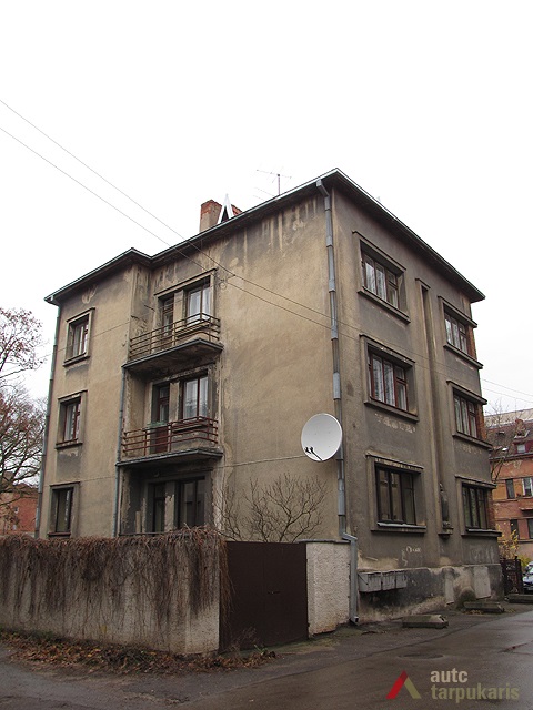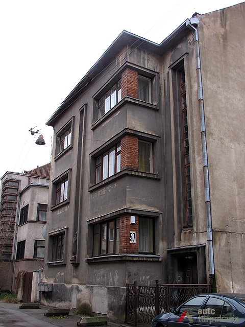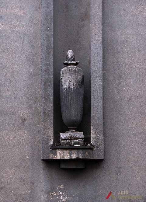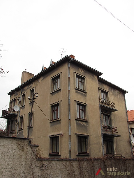 Petras Mačiulis house represents the style of the popular individual residential houses designed by V. Landsbergis-Žemkalnis in the late thirties. The building switches up architect’s favourite architectural expression elements – highlighted window edges and red brickwork used for decorating functional elements. The front face is divided by a niche running across the entire height of the building, whereas the highlighted edges create a harmonious composition with surrounding rows of windows. The modernist appearance of the building is contrasted slightly by a historical element – a decorative vase. Similar vases, which provide eclecticism to the visual expression of buildings, were used in J. Papečkis and T. Petkevičius residential houses in Žaliakalnis. Corner windows decorated with red brickwork highlight the recessed part of the facade which has the main entrance and the staircase.