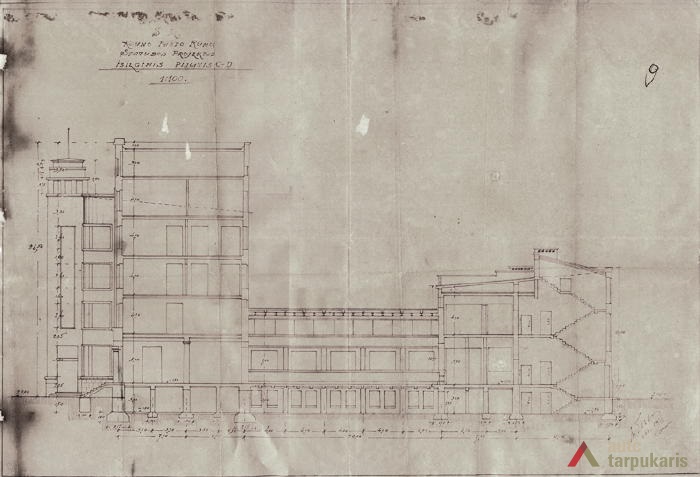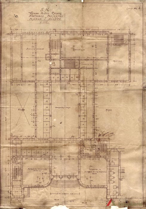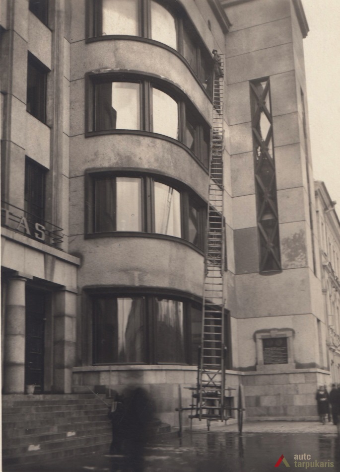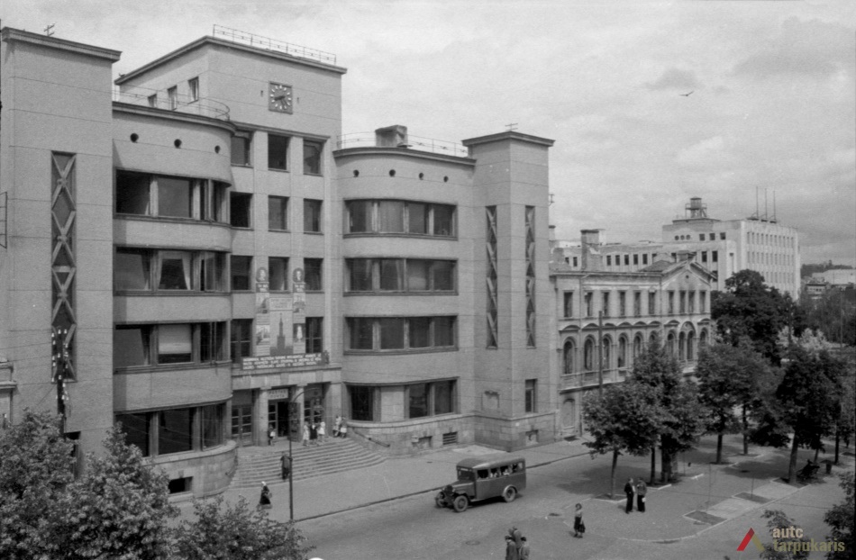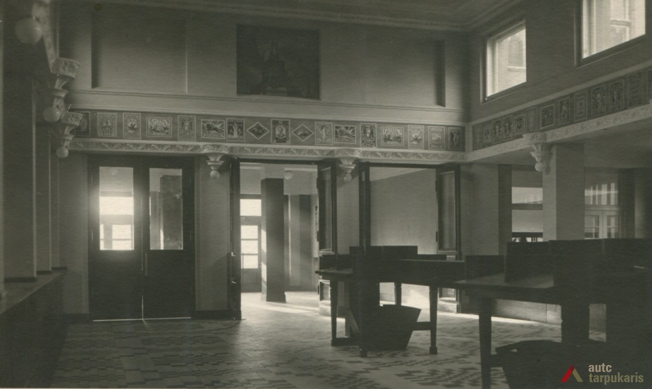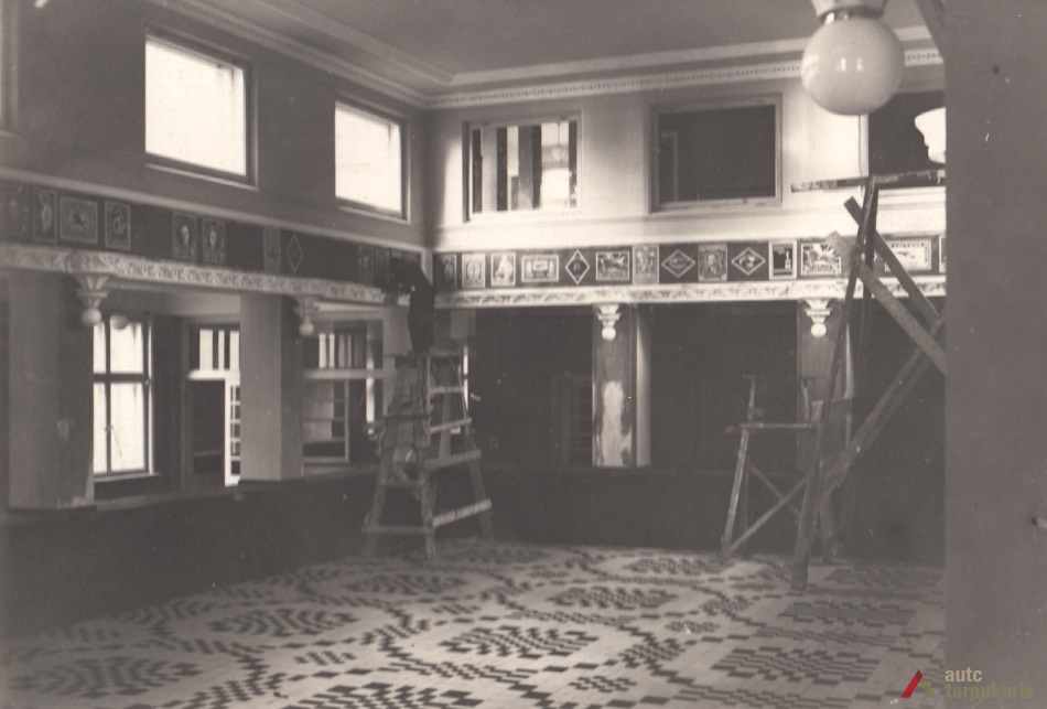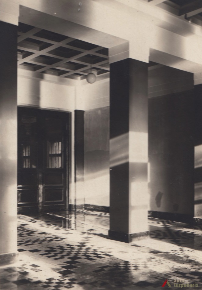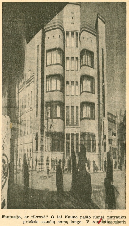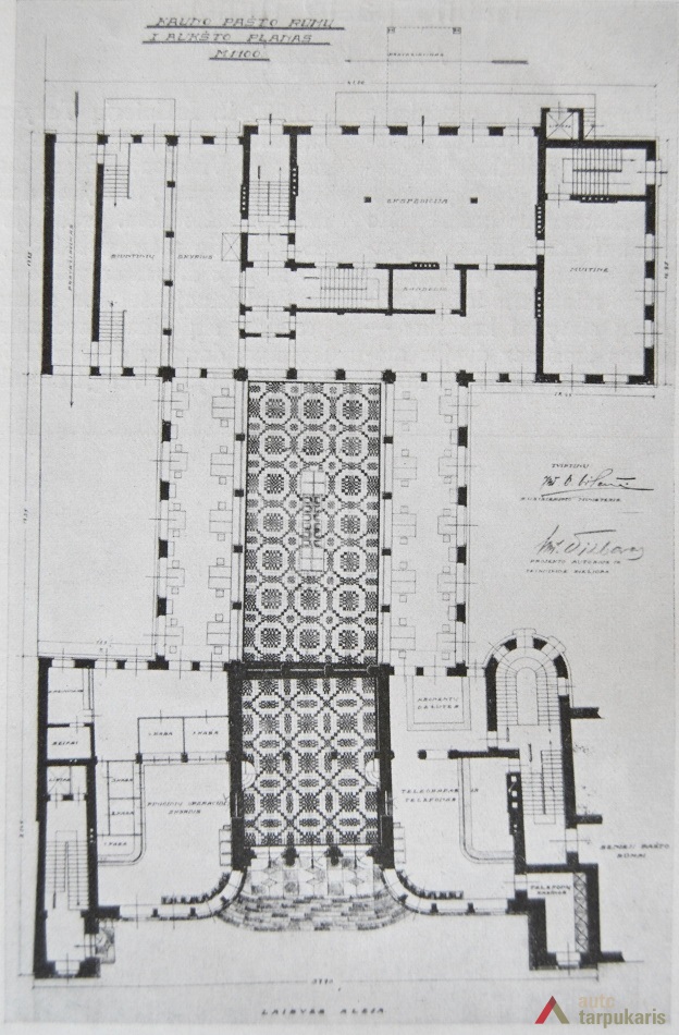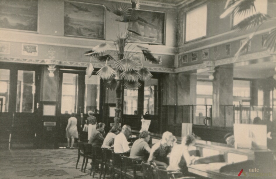 The building designed at the time, when the global economic crisis had not yet gained momentum, does not only distinguish by the combination of elements of modernism and "national style" but also a rather luxurious interior (the construction of the post office cost approximately 1,500,000 litas; other 250,000 litas was spent for decorations and facilities). It should be noted that like a number of other constructions of that time, it could not happen without certain scandals. For instance, the periodical Paštininkų žodis noted that "a number of old bricks were used in certain chief walls. Perhaps it is provided for in the contract with contractors, if not - someone will benefit from it". The interwar press included a number of rather bitter feedbacks of post office employees on the functionality of the building. It was even assumed that "the building was first erected and then it was adjusted to the post office. Such manifestations create a rather sad impression". In Soviet times, the interior of the post office underwent certain modifications: "In 1978-1980, the upper windows of the hall were glazed with stained-glass, the walls were veneered, the lobby was covered with dolomite plates; the layout of certain office spaces was changed."