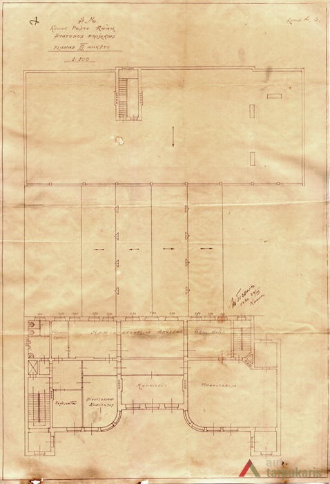 The object may be considered one of the key representative buildings of the interwar period in Kaunas. It is also the most significant building of interesting functional type (apart from this post office, a number of other monumental post office buildings built in Lithuanian cities in the 1930s deserve a special mention as well: Raseiniai (1934), Šiauliai (1938), Šančiai (1935), etc.). The beginning of construction of the post office is associated with 1930, which was designated as the Year of Vytautas the Great (even though the ideas on the need of such a building were expressed as far back as 1924): "The projection on the right features a plaque with both sides of the medal of Vytautas the Great containing an inscription in golden letters which says what determined the construction of the building in 1930-1931." The architect of the building Feliksas Vizbaras was then a senior inspector at the Ministry of Transport and Communications (in fact, Gaigalis, the engineer of the Construction Division of the Post Office Board, had prepared the central post office project some time before).