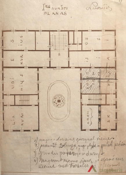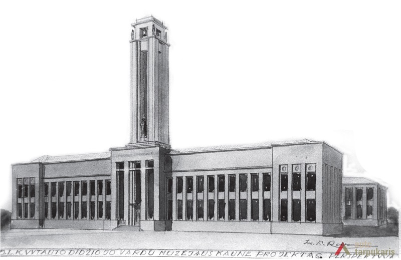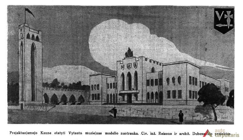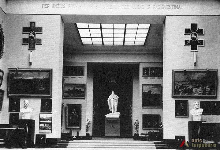 In 1923 it was decided that the site needs expanding. The city council ordered to draw up a draft for a museum (architect / engineer A. Jokimas) “which would be big enough to house a national museum, a city museum, an ecclesiastical museum and an art gallery for Čiurlionis’s works”. Despite that, the project failed to take form. However, with the approach of the 500th anniversary of the death of Vytautas Magnus, things took a new turn. The idea to “perpetuate the memory of Vytautas by building the largest museum in his name” was to become the pinnacle of the commemoration. The new “museum of museums” was to become home to all sorts of museums. In 1935, with the construction coming to the end, the main premises of the building were to be “divided amongst the war museum, Čiurlionis gallery, ethnography section and periodic exhibitions”.