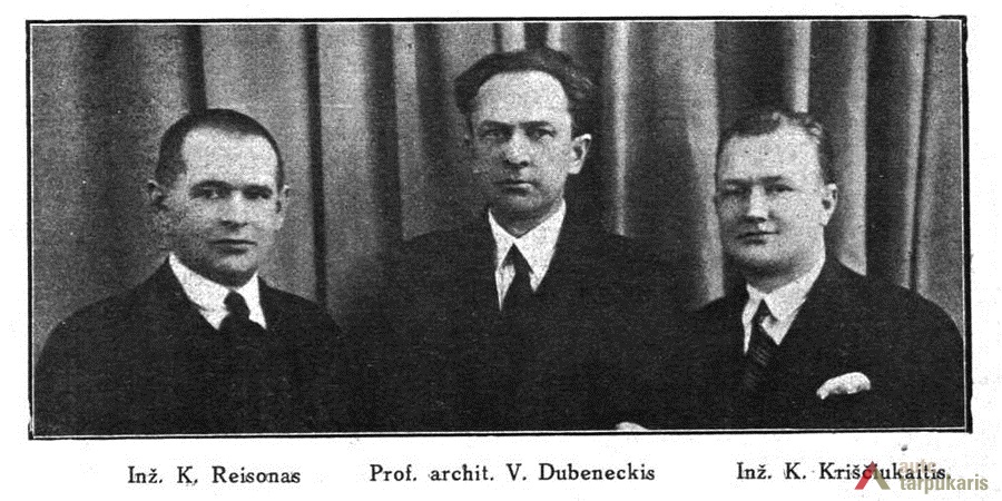 The draft of the building was prepared by and the construction carried out under the supervision of a team of famous architects of that time: Vladimiras Dubeneckis, Karolis Reisonas, and Kazimieras Kriščiukaitis. The selection of the project required two tenders (1929 and 1930) and the construction lasted until the end of 1936. The construction of the House of Nation’s Culture, which then had huge symbolic significance, received wide press coverage and was funded by generous donations from both locals and Lithuanians abroad.