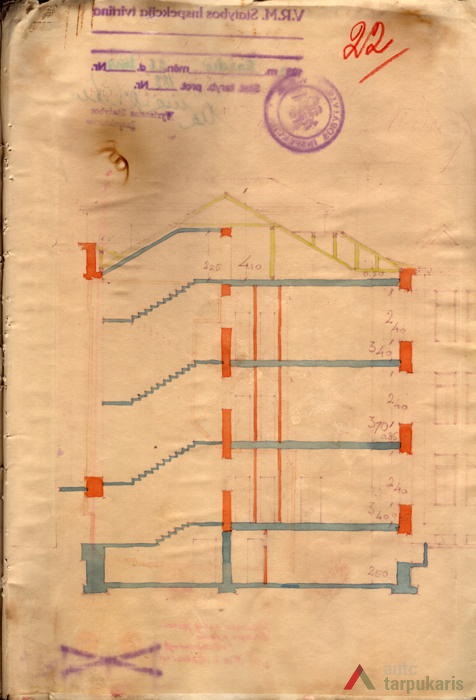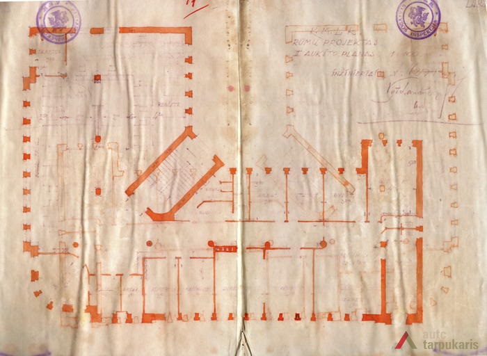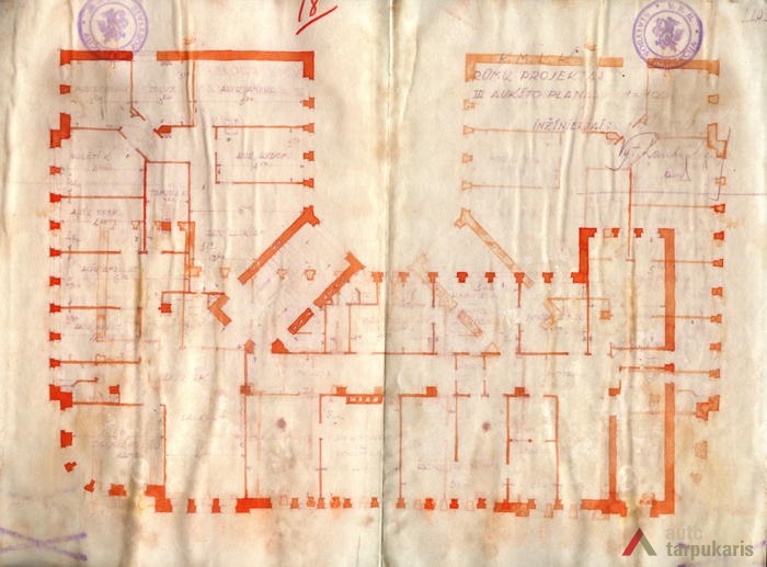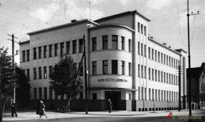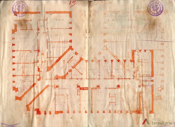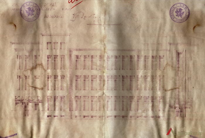There were very few larger and architecturally outstanding objects for medical purposes in interwar Lithuania: “Throughout the hospitals around the Republic there were only three thousand beds”. A quite significant part of smaller towns and town hospitals were wooden, which was far from being par with the increasingly modern society. The construction of such objects gained momentum only after Lithuania’s gradual recovery from the economic crisis: “In 1937 Kėdainiai, Zarasai and Šakiai District hospitals were opened. Marijampolė, Mažeikiai, and Alytus hospitals were under construction, drafts for Raseniai, Telšiai and Seinai District hospitals were being prepared”. The new Health Insurance Fund building in Kaunas was one of the first manifestations of this process. Unfortunately, even though construction volumes were growing, which indicated the rebirth of the health insurance system, the architecture of new objects remained in between historicism and modest modernism. The Health Insurance Fund also had a similar style: we can see vertical rows of narrow windows characteristic of public buildings of the temporary capital, curved structures, and the brought-out corner section of the building with a simple ledge. In terms of functionality, the Health Insurance Fund with its dispensaries for the “working classes” is a lot more modern.