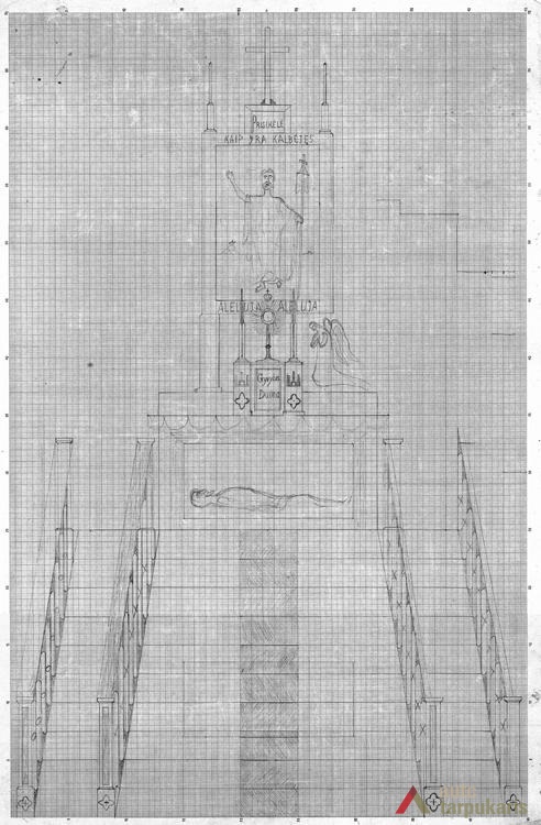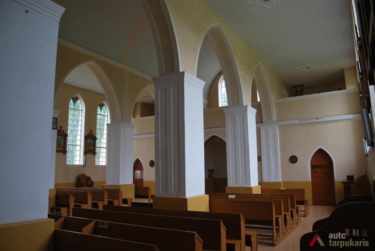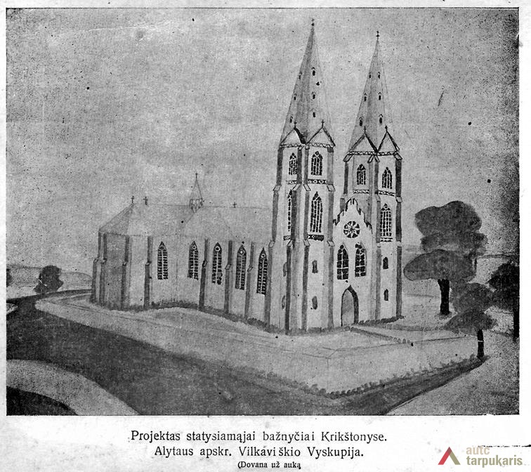 Krikštonys parish was established in 1925. In the interest of Seirijai Pastor Juozas Grajauskas, from the parceling Manor of Zaleskovcizna the parish received 8 ha of land for the church and presbytery buildings and 2 ha for the cemetery. The initiator of the sacral Krikstonys parish center, built in 1926 – 1949, and the main organized of construction and architectural works was priest, historian, ethnographer of Dzukija and Suduva, Jonas Reitelaitis (1884 – 1966). In 1926, temporary buildings were built – wooden presbytery and a church. At the same time, the construction of a stone church was happening and the works were finished in 1935. The Stone Church of the Christ King – an interesting fragment from the inter-war period of Lithuanian architecture. It was the only church at that time which was projected and built by the priest, despite the fact that he did not have required education. Unique building’s plastic was created by relating the tendencies of the nation and professional architecture. The author originally interpreted neo-Ghotic forms, also used national style elements which were popular at that time period.