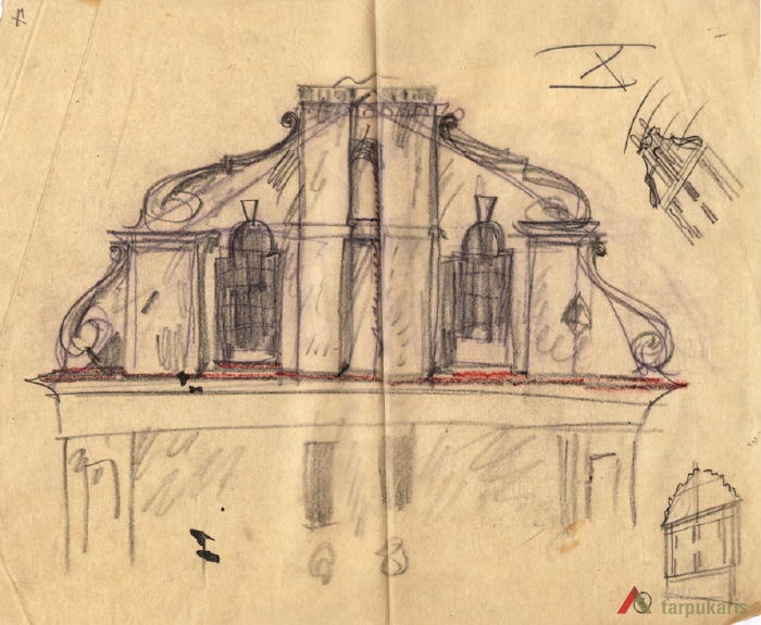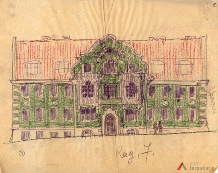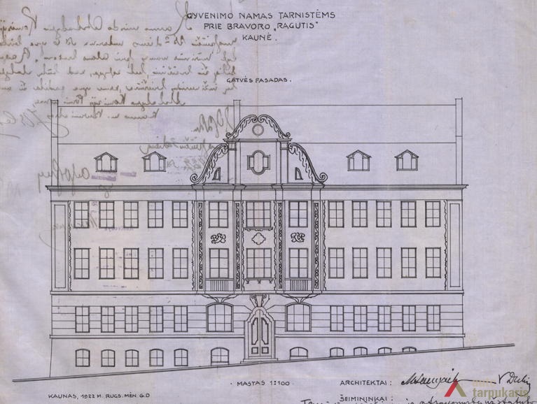 Although it is unlikely that a definitive style was ever provided, the “national style” prevalent during the first decade of the independence is usually considered to be Neo-Baroque, represented by the Baroque-style churches in Vilnius and Lithuanian Baroque heritage in general, which is said to be “a beautiful and a common Lithuanian form”. This form was associated with “traditional symbols taken from farmhouses built in the province”. This was a way of “building an architectural bridge to our past”. Ragutis House, designed by some of the most prominent architectural professionals of that time Vladimiras Dubeneckis, Mykolas Songaila and Adolfas Kelermileris (technical maintenance of the construction was carried out by a lesser-known architect J. Levinson), is one of the most obvious examples of the Lithuanian national policy expressed in architecture.