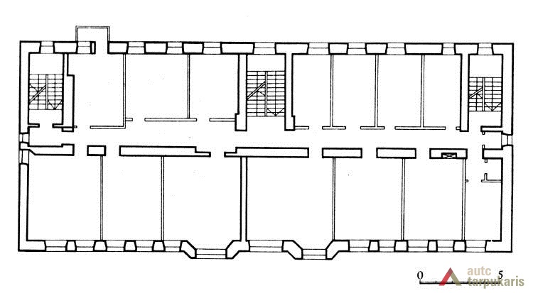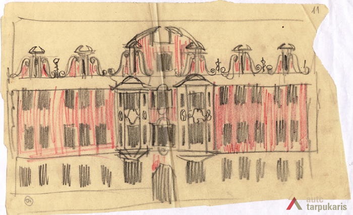The four-story apartment house built in 1923 on Savanoriai Avenue was one of the first major structures in the temporary capital. Architectural attitudes of the new Lithuanian state established only several years ago were best described by the statement of the Lithuanian Restoration Commissariat (LRC), whose task was to “rebuild Lithuanian cities and villages in an orderly and civilised fashion”, published in Statybos Menas Ir Technika magazine. It states: “we should not embrace Russian architecture which they have left behind in Lithuania. We need to cultivate the spirit of a good and serious Lithuanian.” This desire to establish oneself and to create the architectural face of the new state manifested in the so called “national style”.