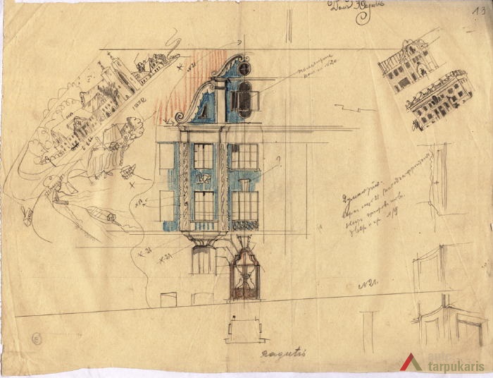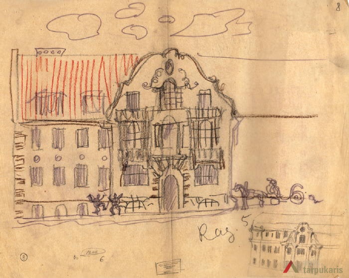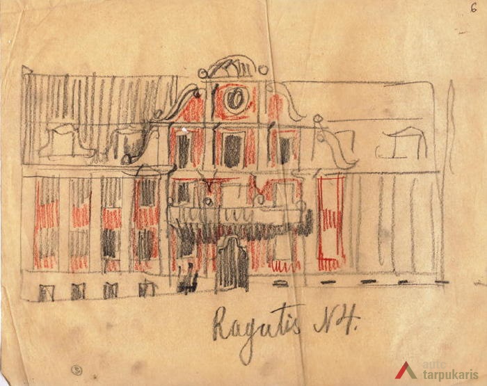 Despite its rather typical function and planned structure, the house became a quite important demonstration of how that “good and serious Lithuanian spirit” should be encouraged. For example, in his fundamental article titled “On Our Architecture”, V. Dubeneckis mentions that the face of Ragutis House “connects us with Kaunas Baroque traditions”. Later Baroque was recurred in many “national style” objects. Besides Baroque, Ragutis House is also enhanced by elements of folk art: “bay windows decorated with tulip ornaments, central windows with patterns resembling wood carvings”.