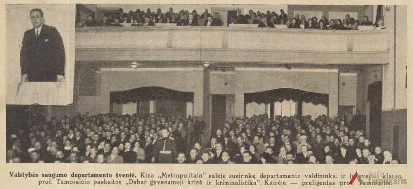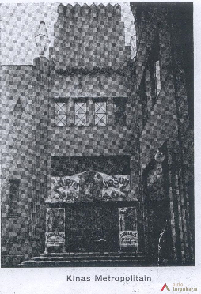 The main façade of “Metropolitain” was one of the best examples of art deco buildings in Lithuanian architecture. Its art’s persuasion topped all other cinema theatres built later. The cinema theatre had a capacity of 700: 564 places in the hall, others – in balcony; it was one of the most spacious halls in Kaunas. During the first years the “Metropolitain” was considered to be prestigious, first-class cinema-theatre. Out of 15 movie theatres which were in Kaunas in 1931, only three – “Metropolitain”, “Kapitol” and “Forum” had this title, earned not only because of buildings esthetic characteristics, comfortable premises, quality equipment, but also because of the value of their artistic repertoire.