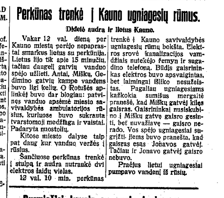 Perkūnas trenkė į Kauno ugniagesių rūmus