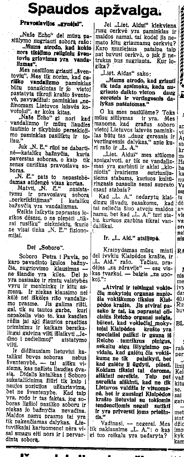 Spaudos apžvalga Kauno Įgulos bažnyčios tematika