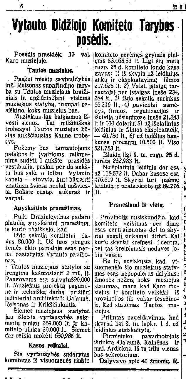 Vytauto Didžiojo Komiteto Tarybos posėdis