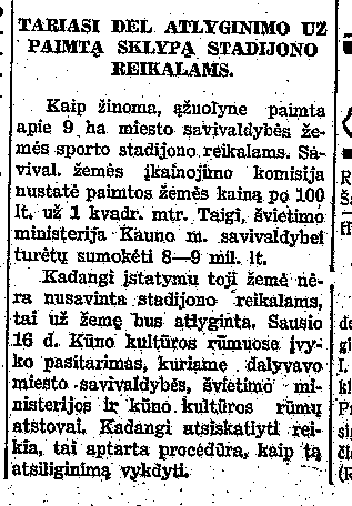 Tariasi dėl atlyginimo už paimtą sklypą stadijono reikalams