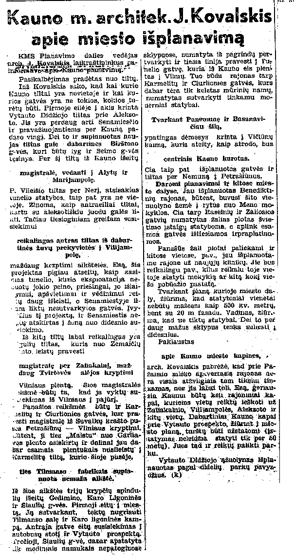Kauno m. architek. J. Jovalskis apie miesto išplanavimą