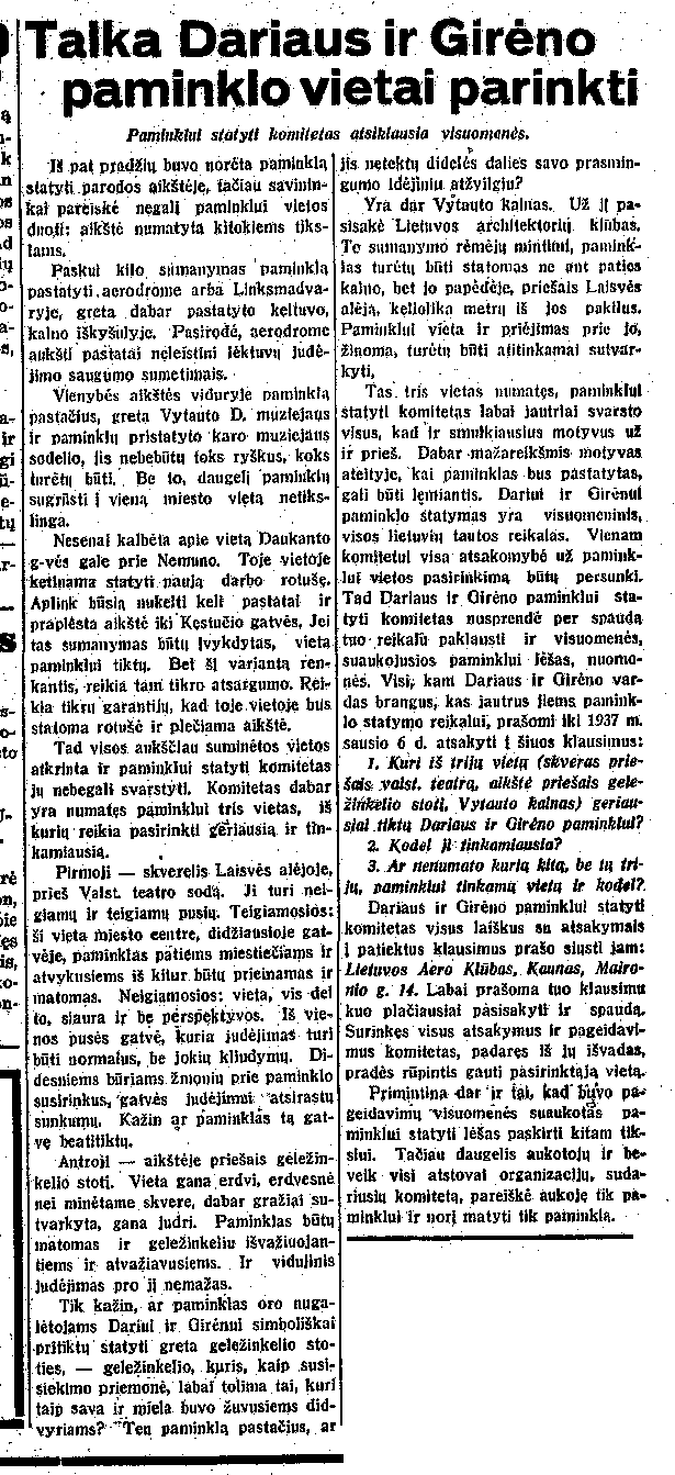 Talka Dariaus ir Girėno paminklo vietai parinkti