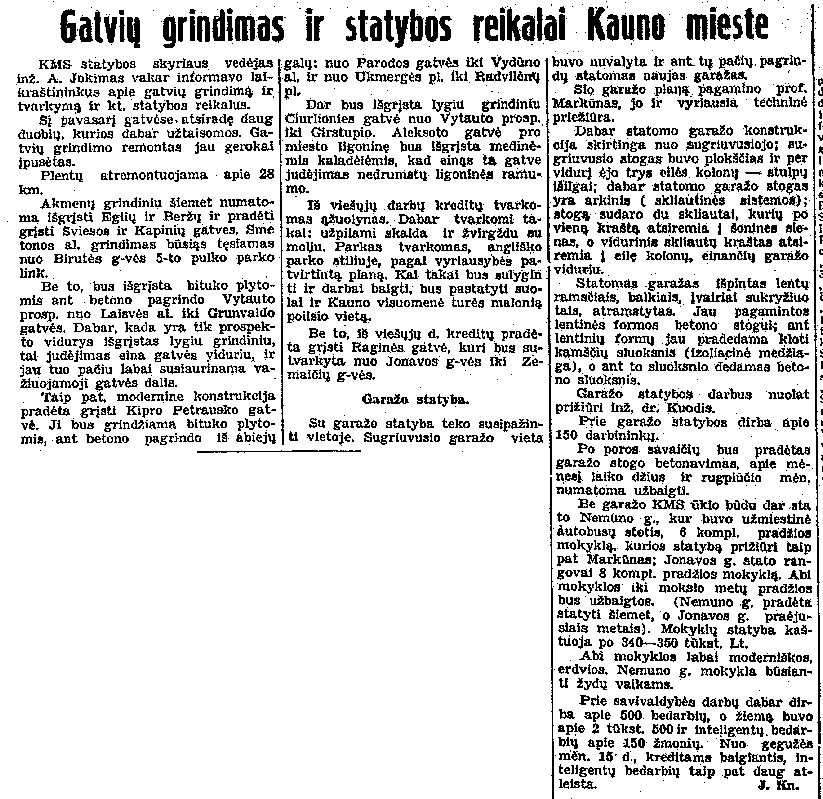 Gatvių grindimas ir statybos reikalai Kauno mieste