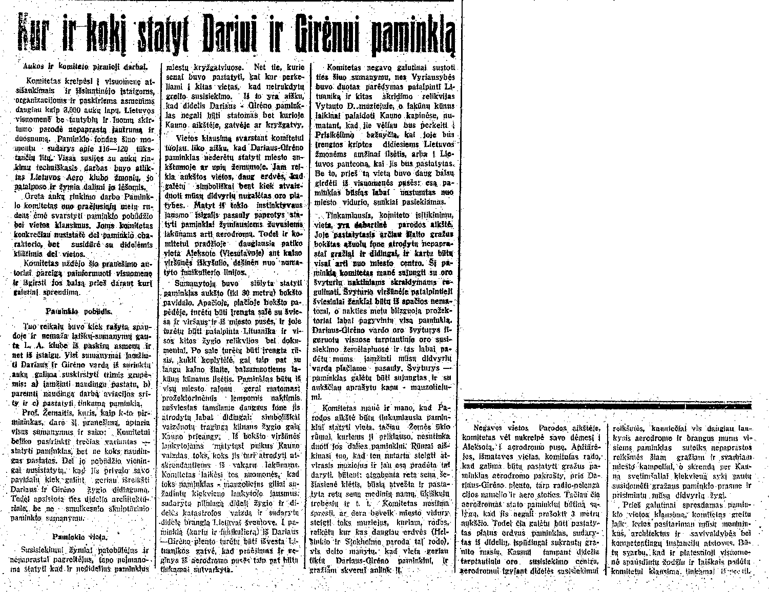 Kur ir kokį statyt Dariui ir Girėnui paminklą