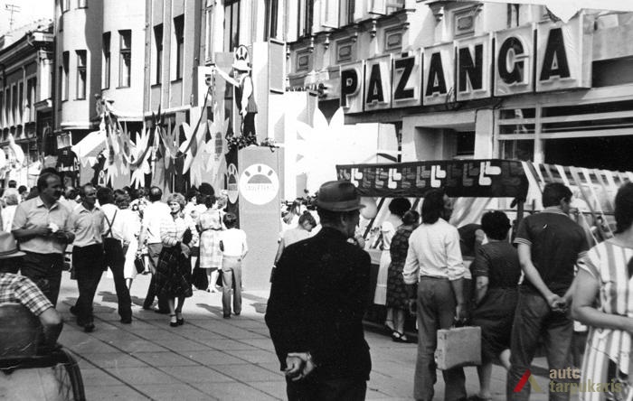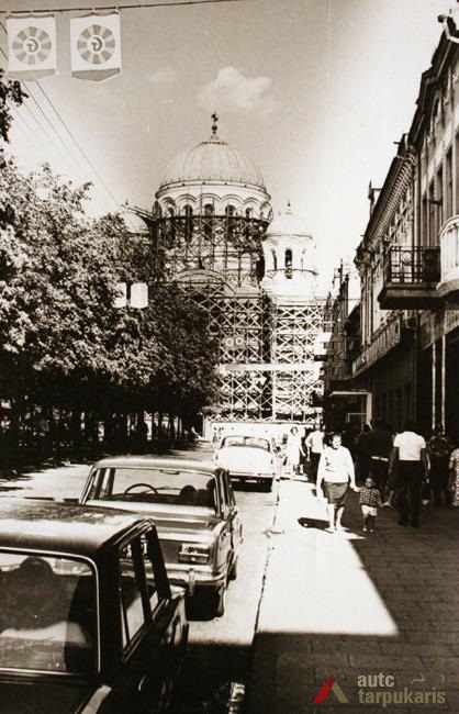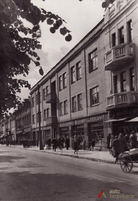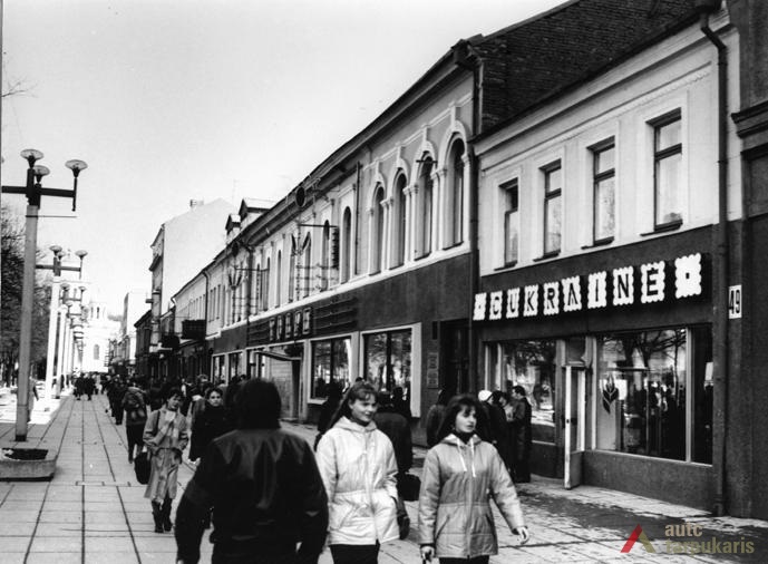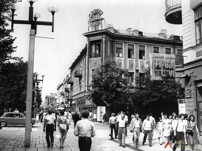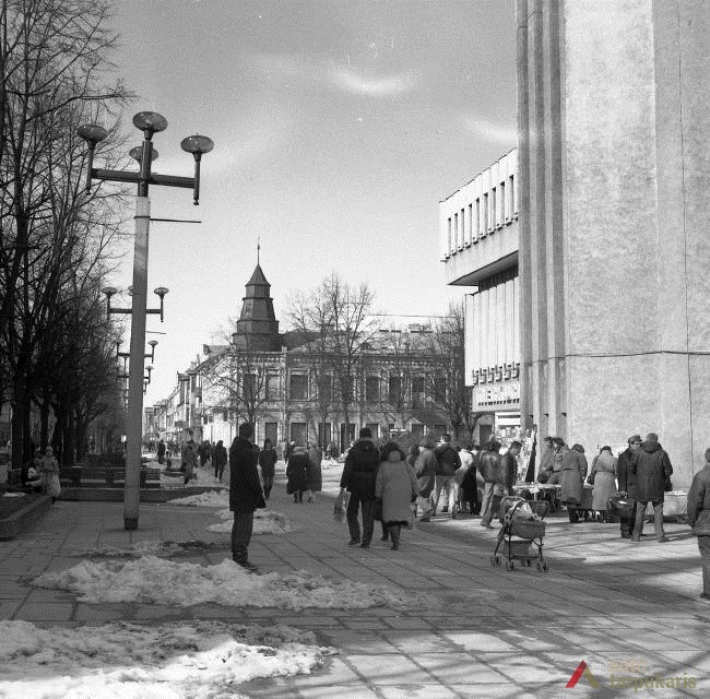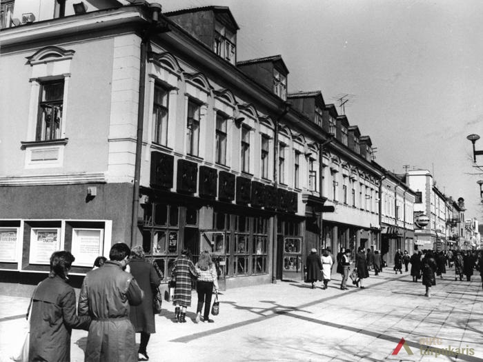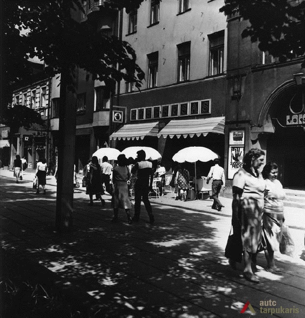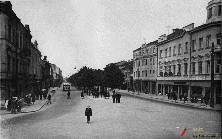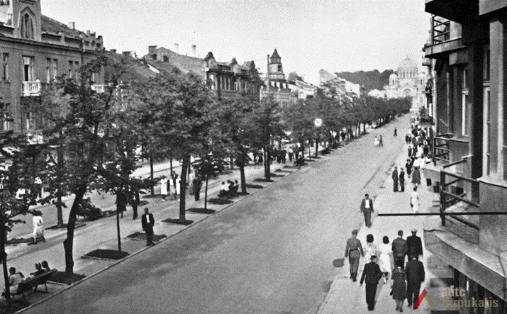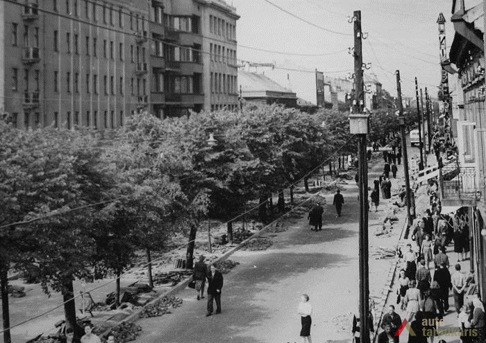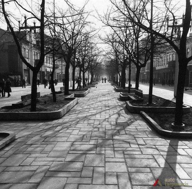 Laisvės alėja sovietiniais metais. Dar 1940 m. tapusi Stalinio prospektu[3], Laisvės alėja iš esmės pakito, kai sovietinė valdžia įvykdė nacionalizaciją. Dauguma kavinių, restoranų, viešbučių, įvairių komercinės paskirties įstaigų – nustojo egzistuoti. Savo prasmę prarado ir valdiškos įstaigos (po Antrojo pasaulinio karo pasinaudota buvusiomis Taupomosiomis kasomis ir jų vietoje įkurdintas Vykdomasis komitetas, o Apskrities savivaldybė atiduota Saugumo ir Milicijos komitetams; funkciją išlaikė Lietuvos banko pastatas). Tad nors ir nepatyręs didesnių fizinių transformacijų, Laisvės alėjos pobūdis ankstyvuoju sovietmečiu turėjo gerokai pakisti. Pirmieji ryškūs architektūros pokyčiai prasidėjo apie 1950 m., ėmus gan intensyviai statyti daugiabučius gyvenamuosius namus (Laisvės al. 100, 81 ir kt.). Apie 1960 m. į alėją pradeda grįžti laisvalaikio funkcija: atsidarė „Tulpės“, „Pasakos“, kiek vėliau „Orbitos“ kavinės. 1966 m. iškilo pirmasis sovietinio modernizmo grynuolis – siuvimo ateljė „Mada“ (arch. A. Sprindys). Standartinių, pramoninei architektūrai artimų formų bei medžiagų statinys gerokai kontrastavosi su aplinkiniu užstatymu (vėliau sovietmečiu iškilo dar ne vienas diskutuotinos architektūrinės vertės ir kontekstualumo objektas: „Komprojektas“ (Laisvės al. 30a.), penkiaaukštis viešbutis (Laisvės al. 35), Zoologijos muziejus ir kt.). 1970 m. generaliniame plane (arch. P. Janulis), sekant užsienio patirtimi, pasiūlyta gatvę atiduoti pėstiesiems. Šis sumanymas pakartotas ir 1977 m. Kauno centrinės dalies projekte (arch. A. Steponavičius ir kt.). Tais pačiais metais parengtas ir Laisvės alėjos rekonstrukcijos projektas (arch. A. Paulauskas, V. Paleckienė), kuris galutinai įgyvendintas 1982 m. Atnaujinant pėsčiųjų gatvę, nemažas dėmesys skirtas grindiniui, mažosioms architektūros formoms, įrengtas kauniečių mėgstamas fontanas. Įrengiant alėjoje pėsčiųjų zoną, perdažyta daugelis jos pastatų fasadų, o pirmieji jų aukštai nutinkuoti vienos spalvos granito tinku[4].