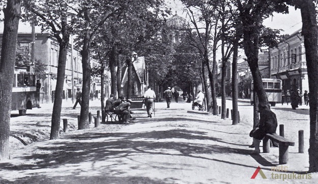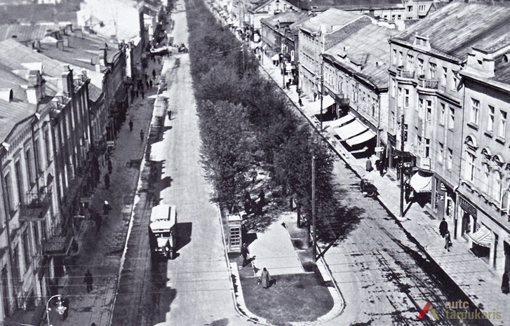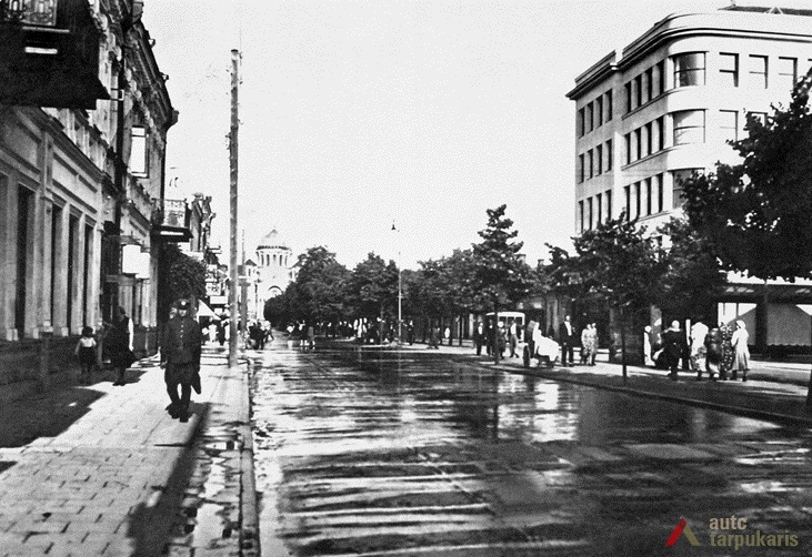 Laisvės alėja tarpukariu. Kaunui tapus laikinąja sostine, prasidėjo naujas Laisvės al. raidos etapas. Pirmieji reikšmingesnės statybos darbai siejosi su rekonstrukcijomis: trečias aukštas užstatytas Raudonojo Kryžiaus ligoninei, išplėstas Valstybinis teatras, rekonstruota nemaža dalis gyvenamųjų namų. Pastarųjų pirmieji aukštai pritaikyti gausėjančių komercinės paskirties patalpų vitrinoms, be to, užstatyti tretieji jų aukštai (per visą nepriklausomybės laikotarpį buvo rekonstruota didžiuma Laisvės al. pastatų). 1923 m. rekonstruotas alėjos grindinys. Iškilus kino teatrui „Odeon“ (dab. Lėlių teatras), Žydų bankui, pradėjo ryškėti įdomi urbanistinė alėjos savybė – visuomeninių funkcijų plėtra į kvartalo vidų. Vėliau šią tradiciją pratęsė kino teatrai „Forum“ ir „Romuva“ (tiesa, didžioji dalis vidinių kiemų per visą tarpukario laikotarpį išlaikė gan chaotišką ir tankų užstatymą įvairialypiais, dažniausiai menkaverčiais ūkiniais statiniais). 1929 m. panaikinus „konkę” ir įrengus vandentiekį, dar kartą pakeista gatvės danga. Prabėgus nepriklausomybės dešimtmečiui, tolydžio pradėjo kilti reikšmingi, didesnio mastelio visuomeniniai statiniai: Ateitininkų rūmai, Centrinis paštas, Apskrities savivaldybė, „Pienocentro“ ir „Pažangos“ bendrovių rūmai ir kt. 1932 m. Kauno savivaldybė priėmė „Privalomą įstatymą statybos reikalais”, kuris įpareigojo Laisvės alėjoje statyti ne žemesnius nei 3 a. mūrinius pastatus. Paskutinis svarbus tarpukario Laisvės alėjos akcentas buvo Taupomųjų kasų rūmai[2].