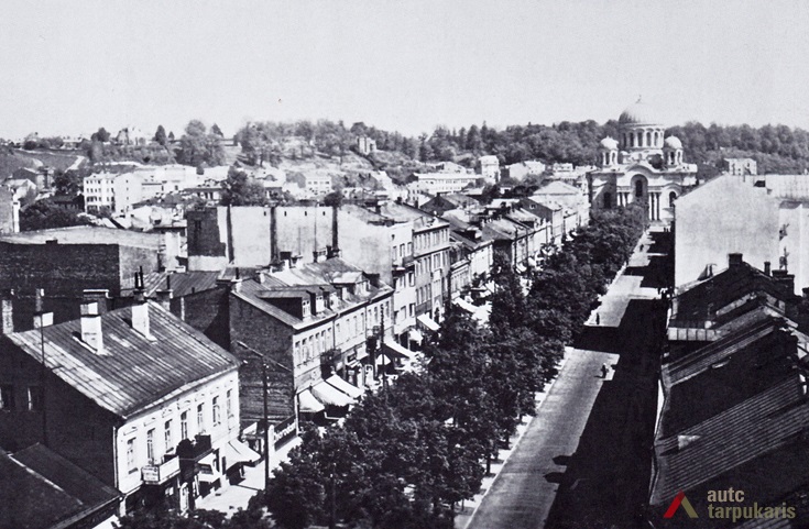 Laisvės al. iki 1918 m. 1843 m., įsteigus Kauno guberniją, miestas jau buvo beatsigaunąs po negandų, pamažu augo gyventojų skaičius. Miesto plėtrai buvo paskirta tuo metu bemaž tuščia teritorija nuo tuometinės Kauno ribos iki Karmelitų vienuolyno. Tais pačiais metais, greičiausiai pritaikant Odesos centro modelį, buvo suplanuota Naujamiesčio teritorija, turėjusi tapti naujuoju Kauno administraciniu centru. Platesnė už kitas, bulvaro tipo, Laisvės alėja (tuomet vadinta Nikolajaus prospektu) tapo kompozicine šios teritorijos ašimi. Miesto planavimo darbai oficialiai buvo pradėti 1848 m., 1851 m. pasodintos liepos, 1860 m. alėja baigta grįsti. Pirmuoju užstatymo etapu, miestui plečiantis nuo senamiesčio, dominavo mediniai vieno aukšto gyvenamieji namai. Laikui bėgant pradėjo kilti ir mūriniai dviaukščiai. XIX a. pab. pradeda rastis ir vienas kitas triaukštis pastatas (1884 m. baigta Mergaičių gimnazija, 1883 m. pastatytas Apygardos teismas ir kt.). Paskutiniame XIX a. dešimtmetyje pastačius Miesto teatrą bei Soborą, 1892 m. pradėjus veikti arklių tramvajui („konkei”), sutvarkius miesto sodą, ši miesto dalis įgavo kiek ryškesnį urbanistinį pobūdį. Dar daugiau miestiškumo suteikė XX a. pradžios statybos: atsirado kino teatras „Triumf“, Raudonojo kryžiaus ligoninė, gausėjo puošnesnių formų mūrinių gyvenamųjų namų[1].