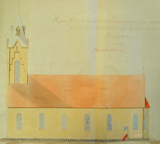 Kol kas neaptiktas naujas patvirtintas projektas. Amžininkų teigimu, jis buvo parengtas Šakių apskrities inžinieriaus Stasio Federavičiaus, tad spėjama, kad šis inžinierius pakoregavo pirminį variantą[8]. Kiek galima spręsti iš negausios ikonografinės medžiagos, realizuotame statinyje pakeisti kai kurie B. Lenčevskio projektuoti sprendimai. Pakito bažnyčios tūris: pastatas išsiskyrė aukšta apside ir žemomis zakristijomis. Pusapskričių arkų langai pakeisti į stačiakampius. Tačiau bažnyčia išliko vienbokštė, neogotikinės formos bokšto kompozicijoje supaprastintos. Bokšto apdailoje virš portalo buvęs apskritas mažutis langas gerokai padidintas.