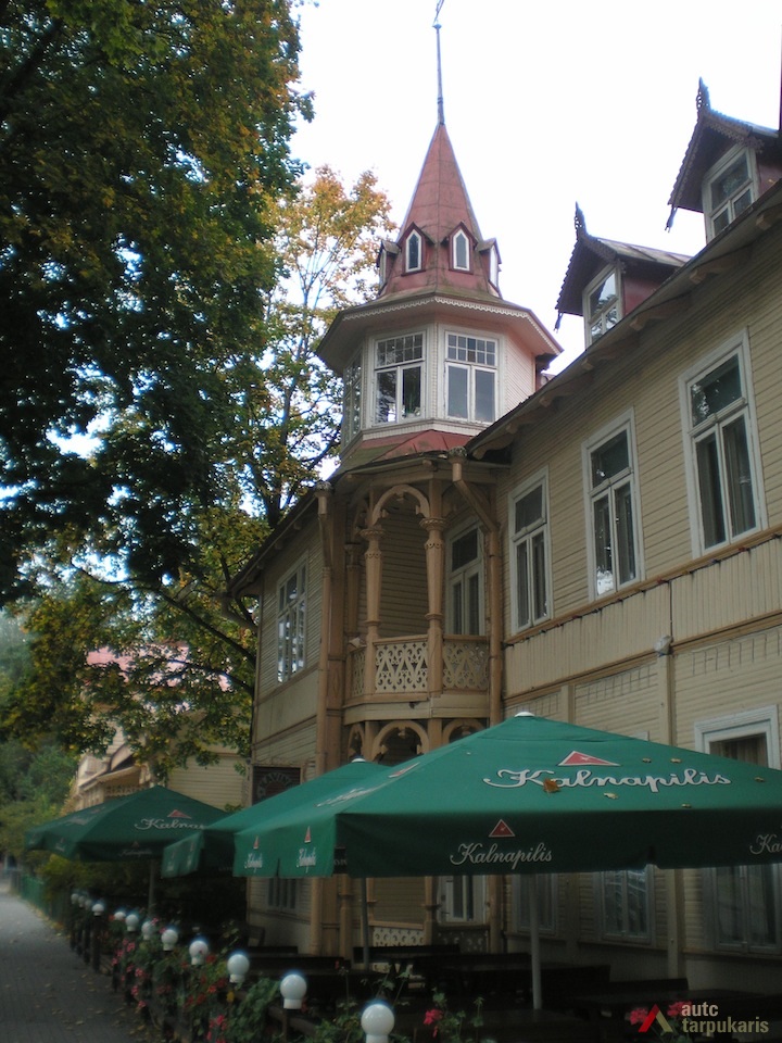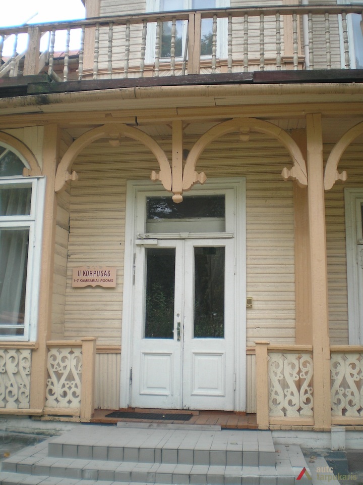 Pastato fasadai itin žaismingo silueto, puošti ažūriniais drožiniais. Pietinio fasado pietvakarinį kampą ryškina rizalitas su aukštu stačiakampiu bokšteliu. Pietrytinio kampo palangės plokštumos gausiai dekoruotos mediniais pjaustiniais. Balkonų kiaurapjūvėse tvorelėse, stulpus tvirtinančiose gembėse suformuotos voliutos ir „S“ raidės motyvas. Rytinį fasadą į du tarpsnius dalija antrame aukšte esanti siaura terasa, apjuosta baliustradine tvorele, o vientisumo jam suteikia pusapskritės arkos motyvas, pasikartojantis pirmo aukšto salės ir platesnio mezonino langų formose bei dekore.