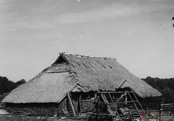 Tai monumentalaus tūrio pastatas, stačiakampio plano (6,5x11 m). Kluonas skirtas javams laikyti, džiovinti ir kulti, taip pat kluonuose buvo laikomas šienas. Paprastai kluono centre būdavo grendymas, ant jo kuldavo javus. Šoninės patalpos (šalinės) nuo grendymo dažniausiai būdavo atitvertos vieno ar kelių rąstų pertvara. Šalinėse javai buvo džiovinami. Pagrindinės kluono durys plačios, dvivėrės, kad būtų galima įvažiuoti vežimu. Stogas čiukurinis, keturšlaitis (būdingas seniesiems kluonams), dengtas šiaudais, tvirtintas išilginėmis klotimis ir sukryžiuotais slogčiais. Tradiciškai pastogės labai plačios, ant jų galima susidėti malkas, padargus ir kitus rakandus. Iš dviejų kluono pusių vėliau pristatyti lentiniai priestatėliai. Taip pat vėliau vienoje šalinėje įrengtas tvartas, laikyti gyvuliai. Lauke jiems atitverta erdvė palei pastato sieną.