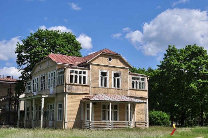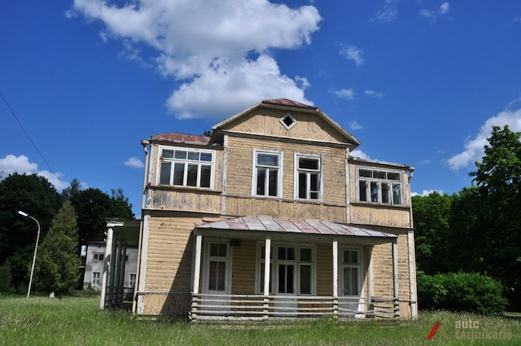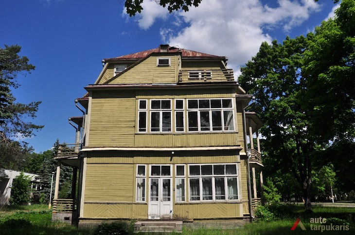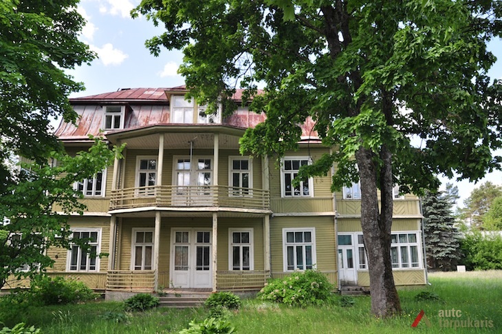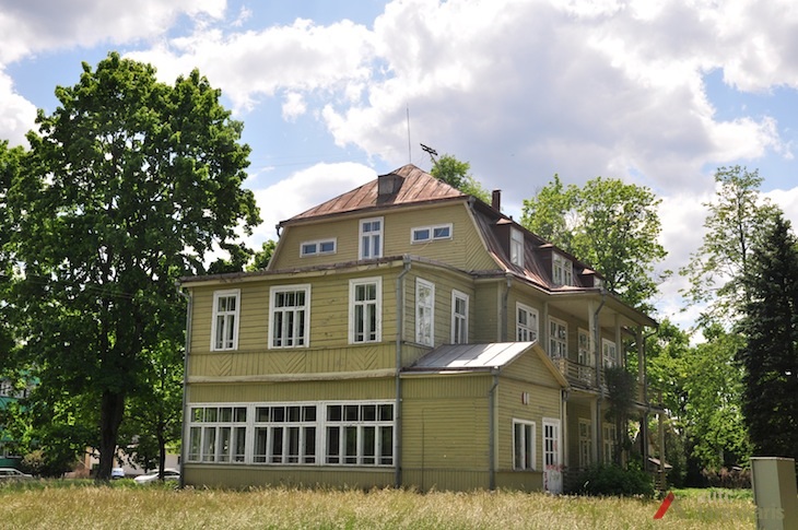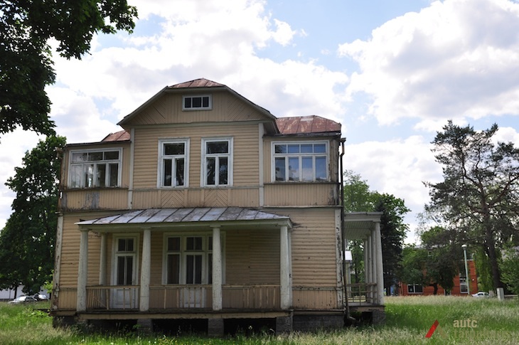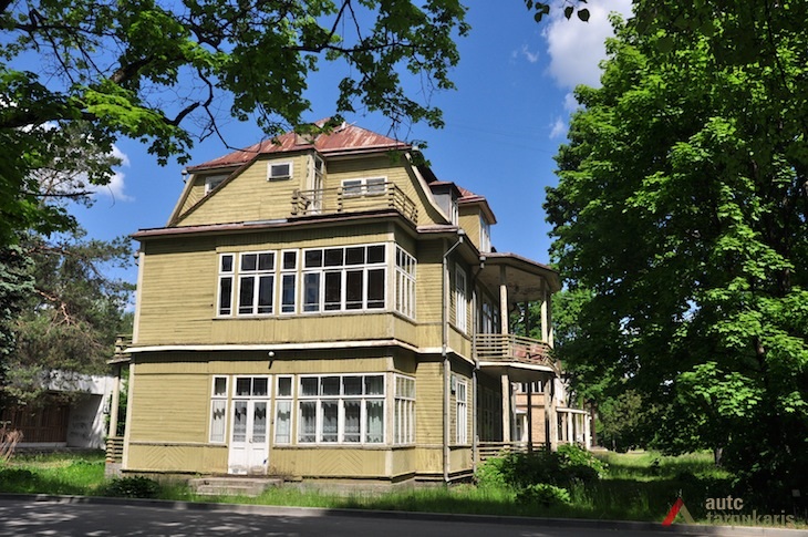 Pirmoji medinė vila (V. Krėvės g. 4) yra dviejų aukštų, apkalta žalsvai dažytomis medinėmis lentelėmis (polangiai vertikaliai ir eglute, kita sienų dalis – horizontaliai). Pastato planas artimas kvadratui, pamatai betoniniai, juostiniai, stogas daugiašlaitis, mansardinis, dengtas skarda. Beveik simetriškuose rytiniame ir vakariniame fasaduose, virš prieangių, įrengti balkonai, pastatui teikiantys grakštumo bei lengvumo įspūdį. O pietinis ir šiaurinis fasadai asimetriški. Rytiniame fasade yra vienos, o vakariniame – dvejos durys, atsarginiai įėjimai į pastatą įrengti šoniniuose šiaurės ir pietų pusės fasaduose. Viloje komponuoti skirtingų dydžių langai, tačiau ši iš pažiūros nepreciziška kompozicija paįvairina pastato fasadų ritminę raišką.