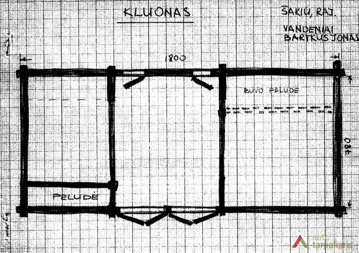 Kluonas (klojimas) – pastatas javams laikyti, džiovinti ir kulti. Pastatas gana siauras ir ilgas, stačiakampio plano (18x7,8 m). Kluono sienos suręstos iš gulsčių netašytų rąstų, atsikišusių į kertes. Po apatiniu rąstų vainiku padėti akmenys. Pagrindiniame pastato fasade – dvejos plačios dvivėrės durys. Kaip įprasta šiame krašte, kluonas pervažiuojamas kiaurai (dvejos durys įrengtos ir nugarinėje pastato pusėje). Stogas dvišlaitis (būdingas naujesniems kluonams), dengtas malksnomis. Viduje skersai pastato – plūkto molio laitas, vadinamas grendymu arba klojimu, spragilais kuliamiems javams pakloti. Peludė įrengta šalinėje. Šis kluonas 1969 m. dar priklausė Jonui Bartkui.