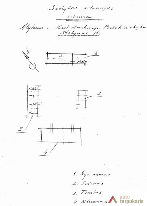 Šią tradicinę dzūkų sodybą sudaro gyvenamasis namas, svirnas, tvartas ir klojimas. Kaip įprasta, sodyba suformuota apie stačiakampį kiemą (perimetrinis planavimas). Kiekvienas pastatas tradiciškai turėjo savo vietą: priešais gyvenamąjį namą statydavo klojimą, viename krašte – svirną, kitame – tvartą. Kieme iškastas veleninis šulinys. Jo vieta tarp gerojo ir ūkinio kiemo. Gerąjį („švarųjį“) kiemą sudaro erdvė tarp gyvenamojo namo ir svirno.