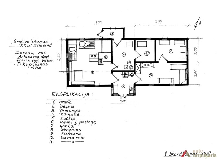 Aukštaitiškas gyvenamasis namas (gryčia) statytas XX a. 3 dešimtmetyje. Priklausė ūkininkui, valdžiusiam 14 ha žemės. Namo ilgis 16 m., plotis 6 m. Tipiškas dviejų galų su priemene namas, būdingas visai Aukštaitijai. Paprastai gryčia ir priemenė turėjo pastovią paskirtį, o antrasis namo galas galėjo būti naudojamas kaip antroji gryčia (gyvenamoji patalpa), kamara (daiktų ir maisto podėlis) arba seklyčia (švari patalpa). Šiame name antrasis galas – kamara. Ji padalyta į tris patalpas (kamara ir dvi kamarėlės). Gryčios patalpoje stovinti krosnis didelė, joje virė valgį, ja apšildė patalpą, ant jos miegodavo. Gryčioje šeima daugiausia ir praleisdavo laiko. Priemenė (šiame krašte vadinama „nameliu“) su pertvara. Name dvejos laukinės durys: per vienas patenkama į prieangį („gonkelius“) ir „gerąjį“ kiemą, kitos veda į „blogąjį“ (čia dar pristatytas prieangis). 1980 m. gryčioje buvo išlikęs tradicinis interjeras, namas priklausė D. Kupčiūnui.