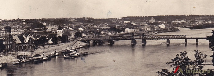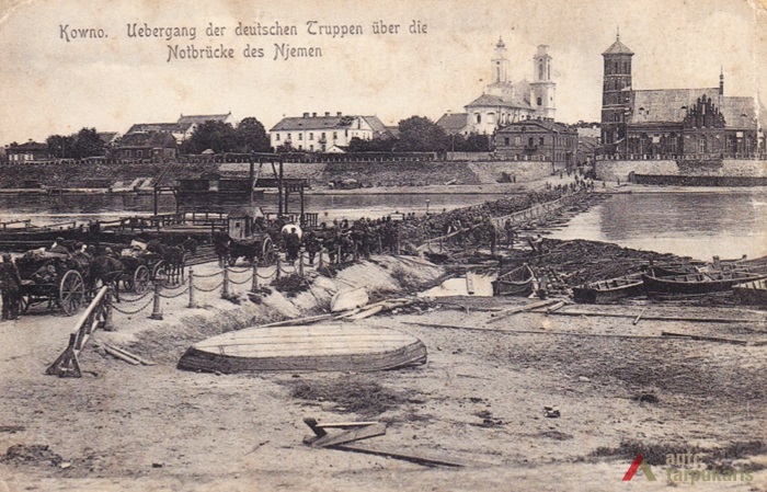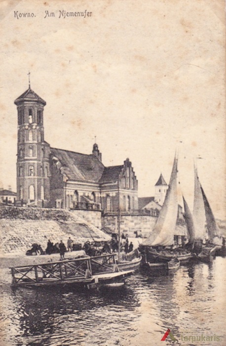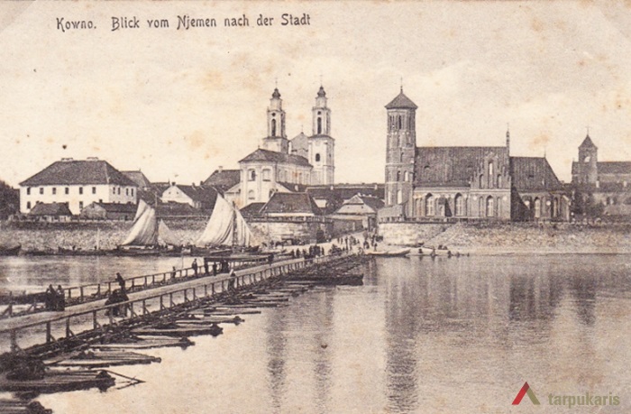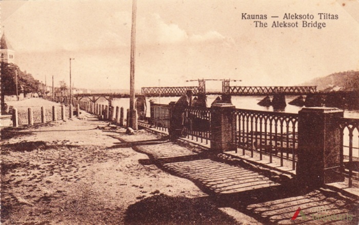 XX amžius buvo ypač pražūtingas tiltams. Nuolatinio tilto iš Kauno į Aleksotą nebuvo iki pat 1914 m. Iki 1853 metų pavasarį ir rudenį per Nemuną ties Vytauto bažnyčia veikė keltas – dviejų laivų pontonas ant ilgo lyno. Vėliau, vasaromis buvo įtaisomas laikinasis plaustinis tiltas 245 m ilgio, 2,3 m pločio, jam reikėjo apie 300 rąstų (ant plaustinio Nemuno tilto įvyko pirmoji politinė demonstracija, švenčiant Liublino unijos sukaktuves 1861 rugpjūčio 12 d.). Einant ižui buvo keliamasi irkline valtimi, o žiemą – važiuojama ledu.