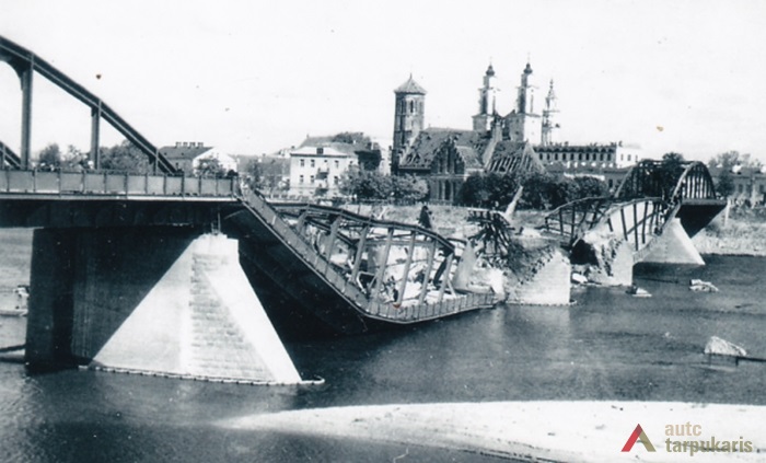 1940 m. rugsėjo 3 d. Kauno burmistro Antano Garmaus įsakymu Vytauto Didžiojo tiltas pervadintas Aleksoto tiltu. 1941 m. birželio 24 d. Aleksoto tiltas susprogdintas kartu su besitraukiančiais rusų kariškiais – su visa kariuomene ir tankais; amžininkų prisiminimais – žmonių lavonai ir arkliai plaukė Nemunu. Sveiki liko tik pirmas ir penktas tarpatramiai. Po dviejų dienų Aleksote jau buvo vokiečiai; jie dalimis atplukdė gatavą pontoninį tiltą, jį sujungė ir taip per Nemuną persikėlė kariuomenė. Netrukus (maždaug per devynis mėnesius) vokiečiai atstatė susprogdintą tiltą (šalia pastatydami laikiną tiltą pėstiesiems). Šis tiltas išstovėjo iki 1944 m. rugpjūčio mėn.; kai vėl buvo sugriautas jau besitraukiančių vokiečių. Rusai per tris mėnesius atstatė medinių santvarų laikiną tiltą. 1946 m. atstatytą tiltą nunešė potvynis. Tada pradėtas statyti dabartinis tiltas. Nuo 1946 m. iki 1948 m. per upę buvo keliamasi valtimis.