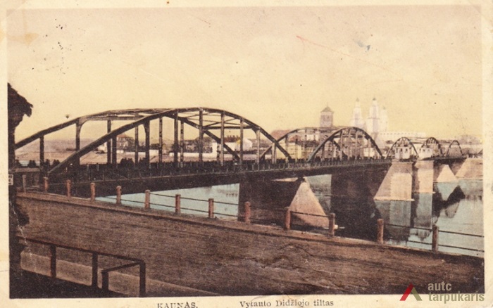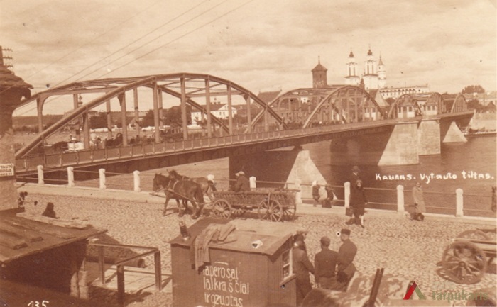 1930 m. sausio 9 d. burmistrui Jonui Vileišiui pasiūlius, tiltas pavadintas Vytauto Didžiojo vardu. Naujasis tiltas iškilmingai atidarytas 1930 m. sausio 11 d. 15 val., tiltą pašventino Vytauto bažnyčios rektorius Kan. Juozas Tumas-Vaižgantas, kuris „paskaitė šiam reikalui labai pritaikintą improvizaciją“[1]. Tilto vardas buvo gana stipriai naudotas politinei propagandai. Anot Prezidento A. Smetonos: „Atidarydami, šiais Vytauto Didžiojo metais naują tiltą per Nemuną, mes jį pavadiname mūsų istorijoj didžiausio žmogaus – Vytauto Didžiojo vardu. Tegu tai ir nėra jo vardui įamžinti didžiausias paminklas, bet vistiek tiltas šioje vietoje yra simbolinis dalykas. Su Vytauto vardu neatmezgamai yra susijusi garbingiausioji Lietuvos praeitis, kada Lietuva buvo „nuo jūrų iki jūrų“. Tiesa, dabar mes negalvojame atstatyti Vytauto laikų Lietuvą. Mums dabar rūpi tik iš senovės lietuvių gyventos žemės apie Nemuną ir jo prieupius. Tiltas per Nemuną jungia du upės krantus. Tai lyg simbolis, kuris mums primena, kad turės būti sujungtos visos Lietuvos žemės, - vadinasi, okupuotas Vilniaus kraštas prie Nepriklausomos Lietuvos“.[2] Tilto iškilmingo atidarymo aktą pasirašė Valstybės prezidentas A. Smetona, Ministras pirmininkas I. Tūbelis, Susisiekimo ministras V. Vileišis, Kauno miesto burmistras J. Vileišis, Tilto statybos viršininkas A. Murza, Tiltą stačiusios firmos „Højgaard & Schultz a/s“ atstovas Knud Højgaard. Iki II-ojo pasaulinio karo nuo Vytauto Didžiojo tilto iki Panemunės kursavo dviejų vagonų traukinukas.