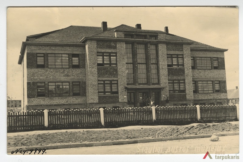 Šiaulių miesto inžinierius Vladas Bitė mūrinę pradžios mokyklą suprojektavo naujoje miesto dalyje, ant išparceliuoto buvusio Gubernijos dvaro žemės. Pastatas buvo suprojektuotas dešimties komplektų mokyklai, tačiau 1933 m. antrame aukšte laikinai įkurdinus „Aušros“ muziejų, mokykla veikė tik pirmame aukšte, pusrūsyje buvo įrengti du butai sargams. Muziejui patalpos mokykloje buvo skirtos laikinai, įstrigus pagal architekto Karolio Reisono projektą pradėtai Muziejaus ir bibliotekos rūmų statybai. Buvo planuojama ateityje muziejų iškelti, o mokyklos antrame aukšte įrengti dar keturias klases, salę, knygyną ir rankdarbių klasę, palėpėje įrengti mokyklos muziejų. Tačiau atsitiko atvirkščiai – šiandien visas pastatas priklauso Šiaulių „Aušros“ muziejui. Pastato tūris simetriškas, centrinę simetriją pabrėžia rizalitas. Fasadų kompozicija aiški, vyrauja horizontalus langų ritmas. Pastato architektūroje aiškiai matoma mokyklos tipologija.