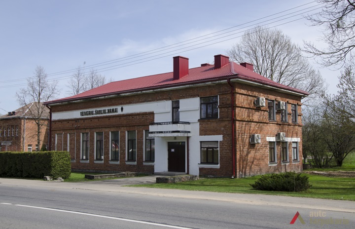 Šaulių namai Veiveriuose pradėti statyti 1937 m. rugpjūčio mėn. pagal architekto Jono Kovalskio-Kovos projektą[2]. Nors ir nepasižymintis originalia architektūra, mūrinis pastatas išsiskyrė iš provincijos miestelio urbanistinės aplinkos, spauda jį pavadino „gražiausiu Veiveriuose“. Namuose buvo įrengta didelė salė, štabo, skaityklos patalpos, bufetas bei slėptuvė nuo dujų atakų. Statyba, neskaitant pačių šaulių darbo, kainavo apie 45 tūkst. Lt[3]. Prie jos itin daug prisidėjo vietos šauliai ir ūkininkai, kurie aukojo pinigus ir net patys arklių traukiamais vežimais gabenosi plytas iš šalia Marijampolės įsikūrusios plytinės[4].