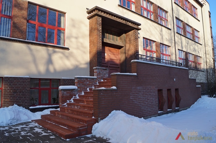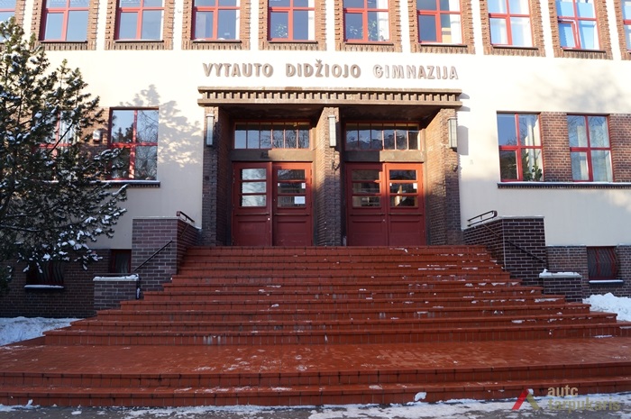 Vienintelė valstybinė lietuviška gimnazija, įkurta 1922-aisiais, ilgą laiką neturėjo nuosavų patalpų, todėl iki 1934 m. su beveik 400 mokinių glaudėsi Klaipėdos mokytojų seminarijoje. Mokinių skaičius nuolat didėjo, ir vis stiprėjo poreikis išsikelti į nuosavas, erdvesnes, patalpas. 1930 m. Klaipėdos direktorijos pirmininkas šio krašto lietuvių poreikiams – Raudonojo Kryžiaus ligoninės ir Vytauto Didžiojo gimnazijos rūmų statybai – paskyrė du gretimai vienas kito esančius sklypus. Vis dėlto direktorijai, kurią daugiausia sudarė vokiečiai, lietuviškos gimnazijos statyba neatrodė aktuali, todėl ja ėmė rūpintis Lietuvos švietimo ministerija[4]. Vytauto Didžiojo gimnazijos rūmai oficialiai atidaryti 1934 m. lapkričio 3 d. Rūmų statybos komisiją sudarė inž. R. Aukštuolis, Vytauto Didžiojo gimnazijos direktorius dr. K. Trukanas, komisijai pirmininkavo buvęs Lietuvos ministras pirmininkas inž. E. Galvanauskas. Pastarasis ypač daug pasistengė Klaipėdoje steigdamas lietuviškas švietimo įstaigas, kurios sparčiai augantį uostamiestį turėjo paversti svarbiu prekybos ir pramonės centru.